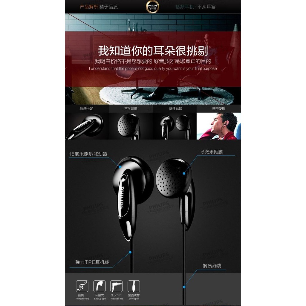 Philips Philips ซับวูฟเฟอร ์ HIFI Fever หูฟังชนิดใส ่ ในหู หูฟังแบบแบน หูฟังกีฬา