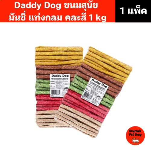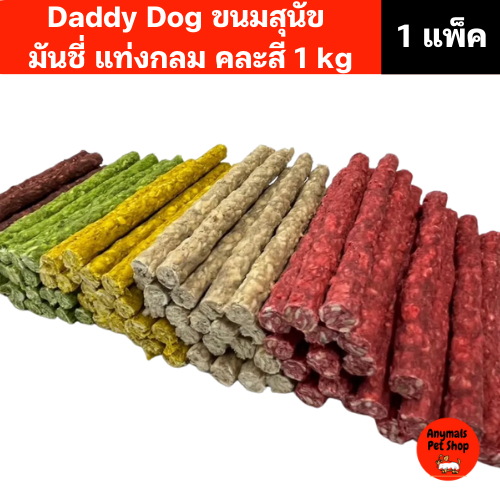 (1 แพ็ค) (1 kg.) Daddy Dog ขนมสุนัข มันชี่ แบบแท่งกลม คละสี