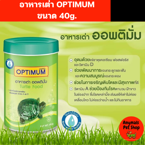 (เซต 6 กระปุก) Optimum (กระปุกละ 40 กรัม) อาหารเต่าสูตรพิเศษที่อุดมไปด้วยสารอาหารครบถ้วนและสมดุลสำหรับเต่าโดยเฉพาะ