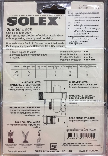 กุญแจล็อคประตูม้วนSOLEX (Shutter)รุ่นCO ‼️**รับจัดระบบดอกกุญแจให้ใช้ดอกเดียวกันได้ ไม่ต้องลูกกุญแจเยอะ