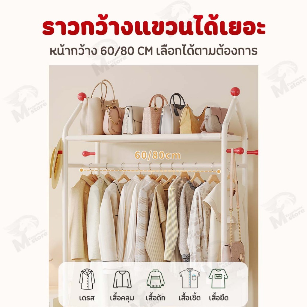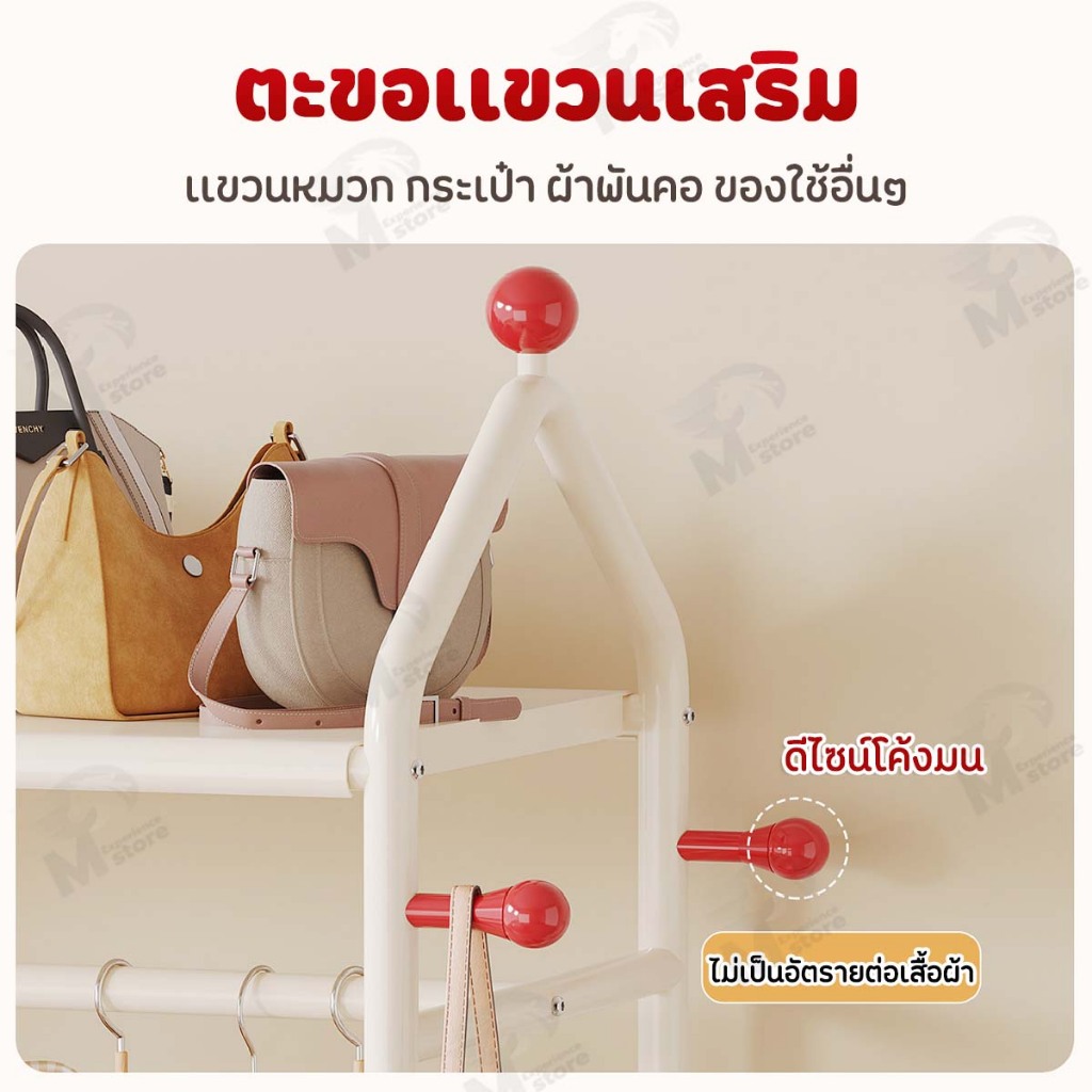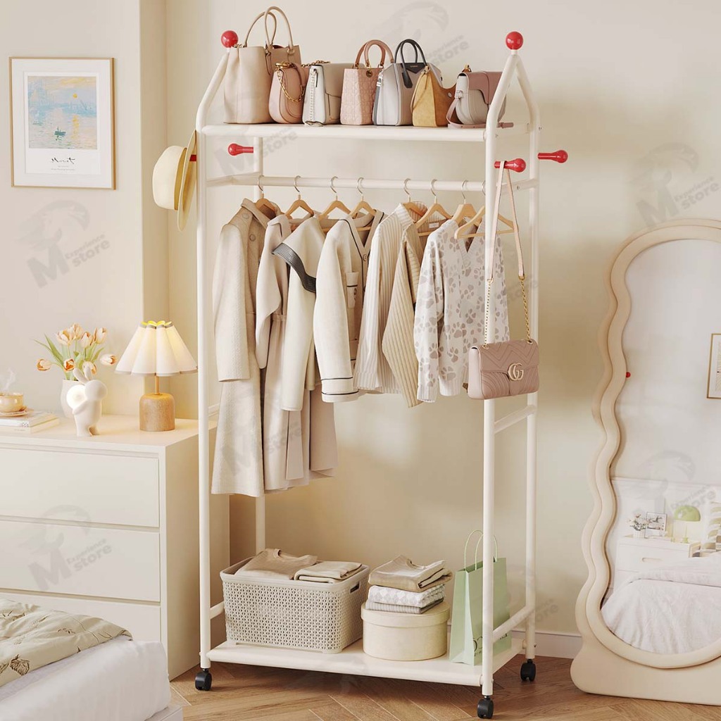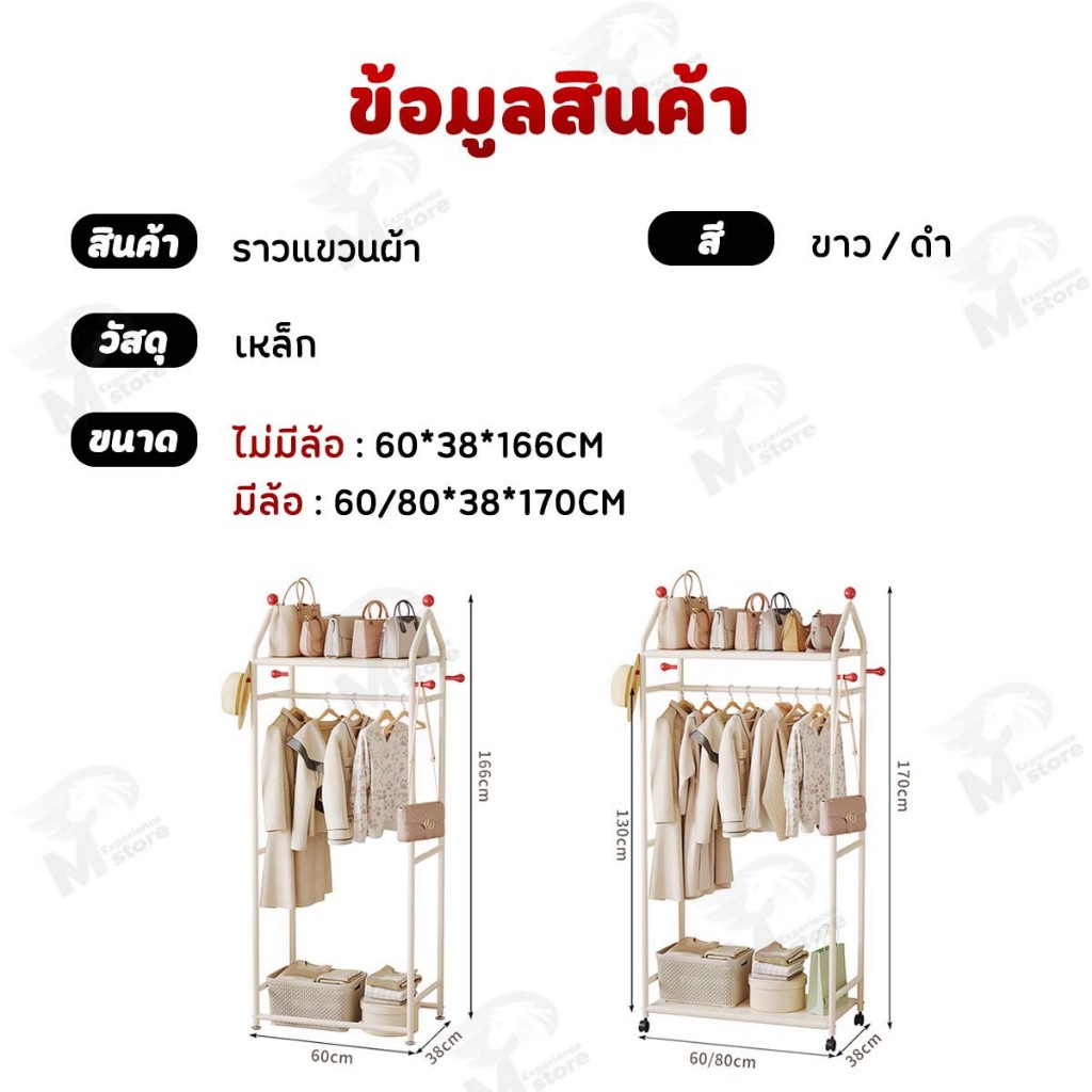 [ ราวทรงบ้าน 3in1 ] ราวแขวนผ้า ราวตากผ้า ชั้นวางของ ตะขอแขวนหมวก กระเป๋า สไตล์มินิมอล แบบมีล้อ/ไม่มีล้อ โครงเหล็ก AK