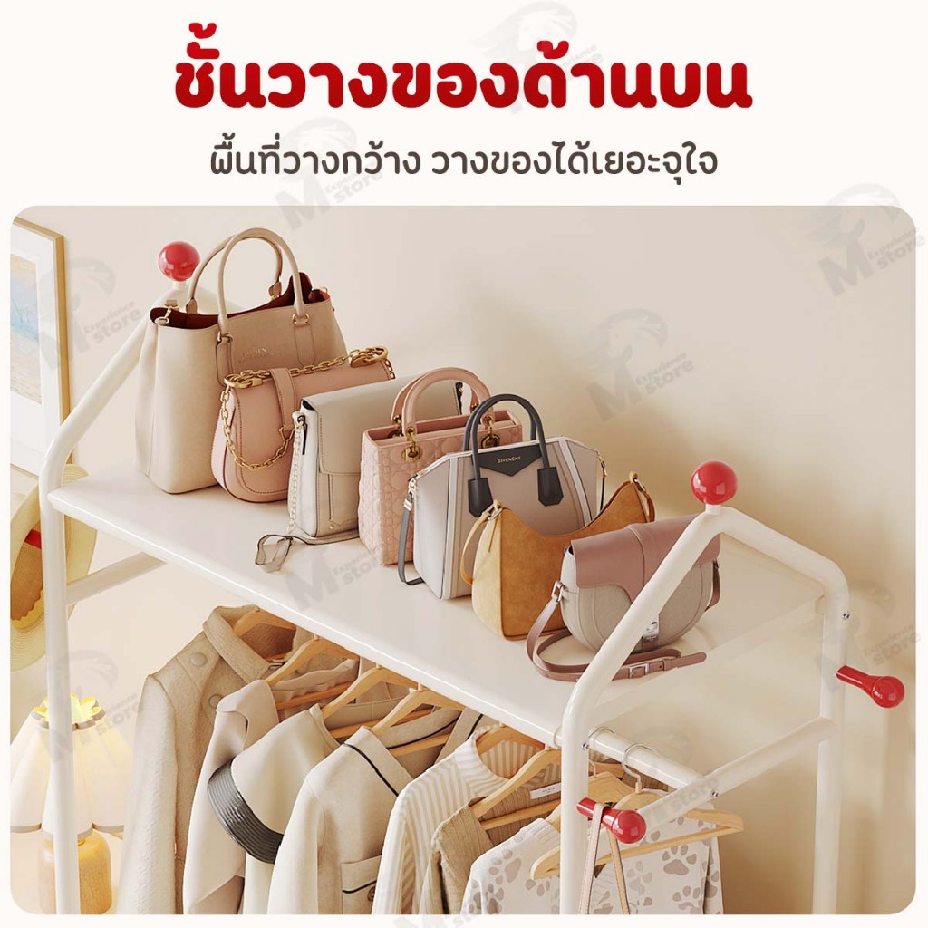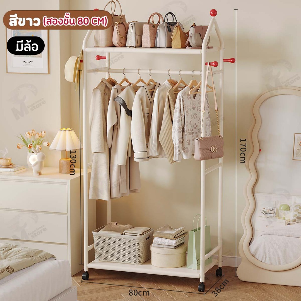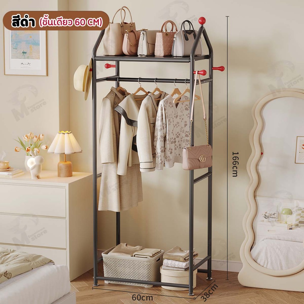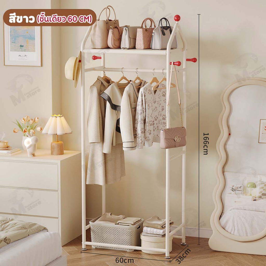 [ ราวทรงบ้าน 3in1 ] ราวแขวนผ้า ราวตากผ้า ชั้นวางของ ตะขอแขวนหมวก กระเป๋า สไตล์มินิมอล แบบมีล้อ/ไม่มีล้อ โครงเหล็ก AK