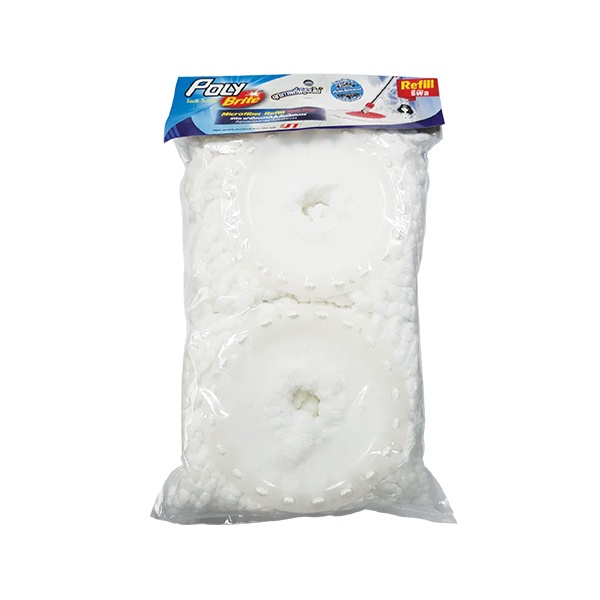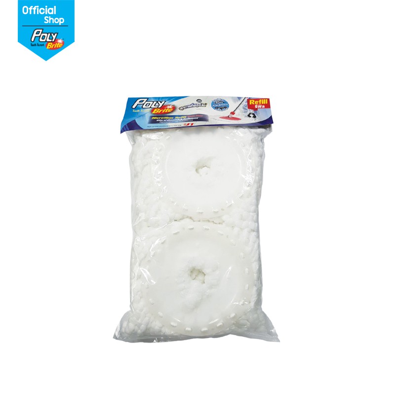 Poly-Brite โพลี-ไบรท์ รีฟิล ผ้าม็อบถังปั่น สีขาว (2 ชิ้น/แพ็ก) ผ้าไมโครไฟเบอร์