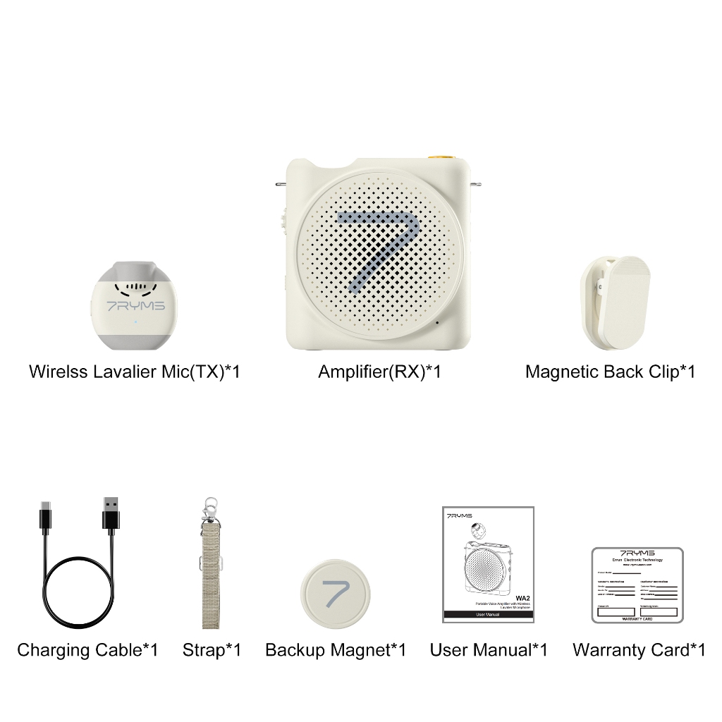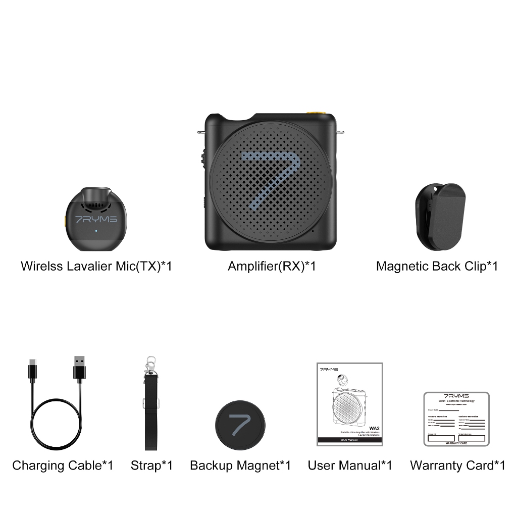 7RYMS WA2 ไมค์ช่วยสอน ลำโพงพกพาขนาดเล็ก เครื่องขยายเสียงไร้สาย พร้อมไมค์ลอยหนีบเสื้อ Bluetooth สำหรับครูสอน โปรโมชั่นผู้ขาย ไกด์ท่องเที่ยว มัคคุเทศก์