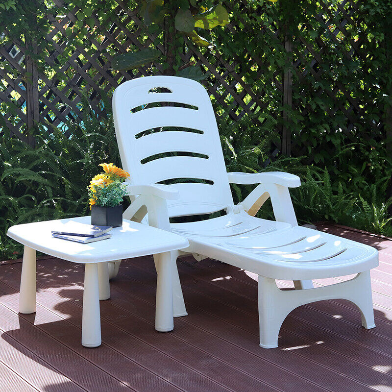 เทเดมี กลางแจ้งพับสระว่ายน้ําเก้าอี้ชายหาดโต๊ะชายหาดกลางแจ้งดาดฟ้าเก้าอี้สีขาวริมสระว่ายน้ําดาดฟ้าเก้าอี้อาบแดดสําหรับผ่อนคลาย