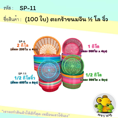 (100 ใบ) ตะกร้าจิ๋ว ใส่เส้นขนมจีน 1/2 กิโลพูน ตะกร้าพลาสติกสีสวย ปลูกต้นไม้ เพาะชำ