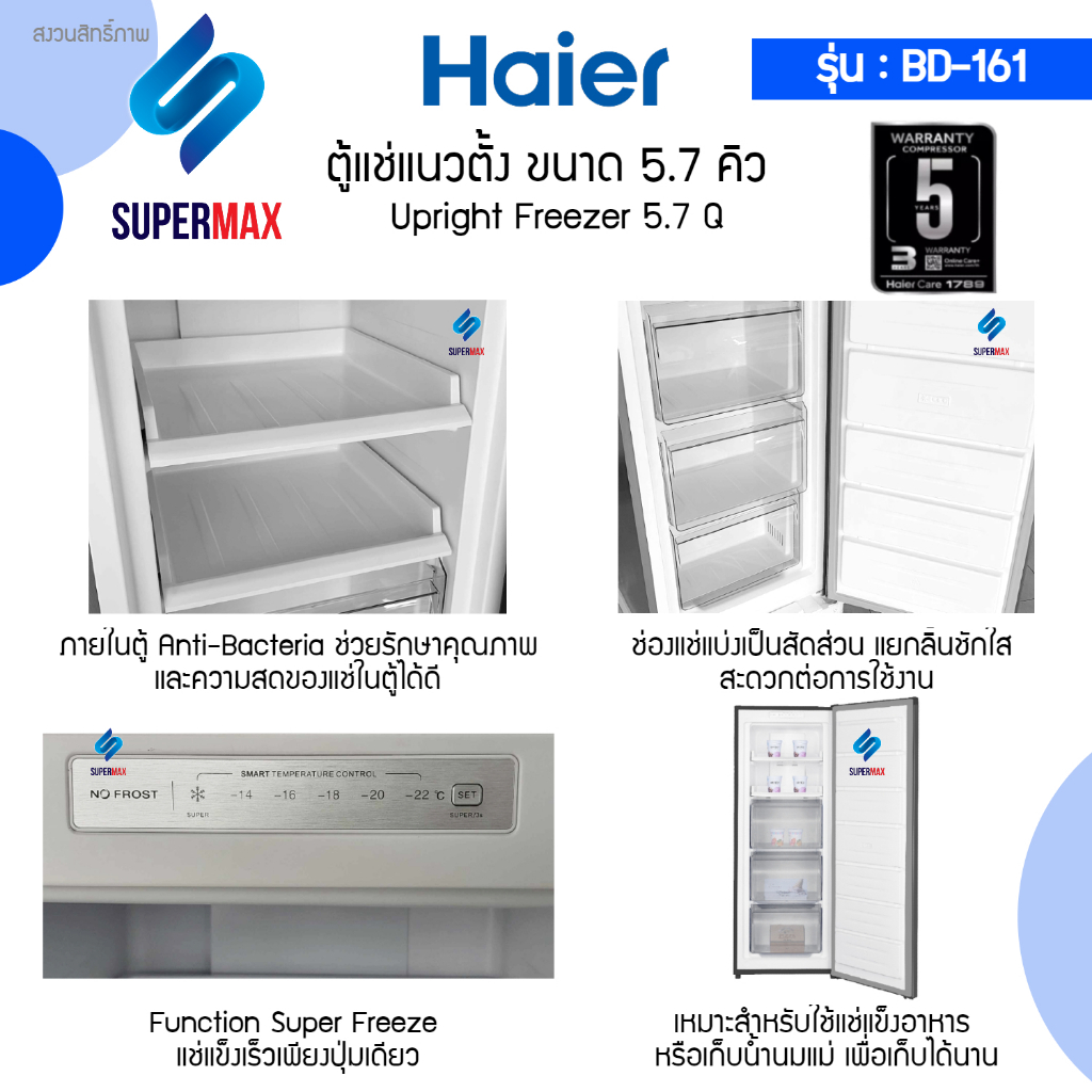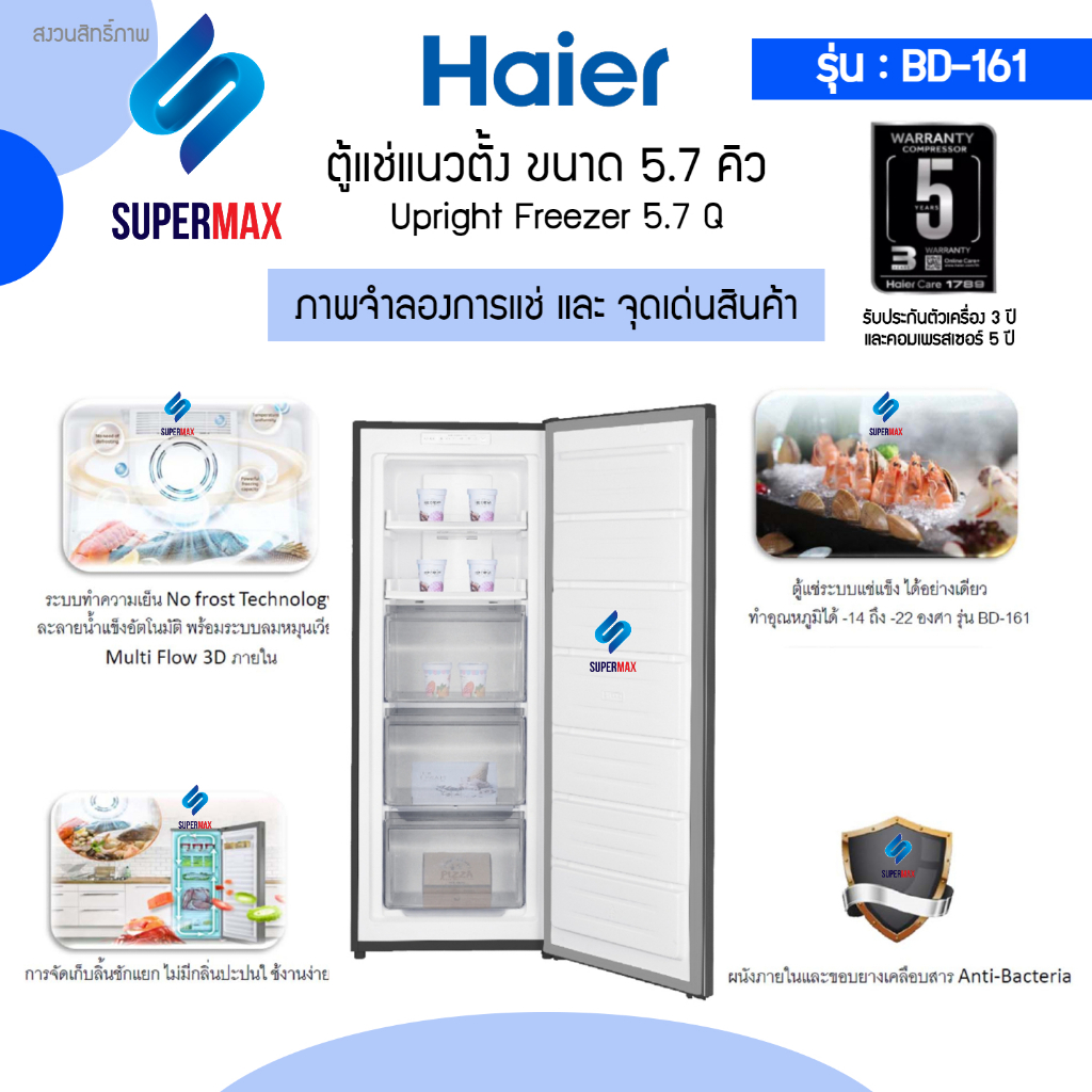 Haier ตู้แช่แข็งแนวตั้ง ความจุ 5.7 คิว รุ่น BD-161 ระบบลมหมุนเวียนในตู้ Multi Flow 3Dพร้อม No Frost รับประกันOnsite serv