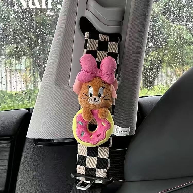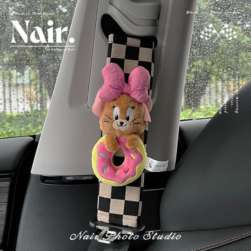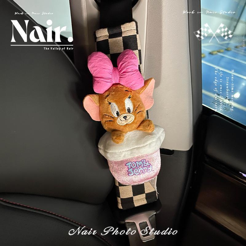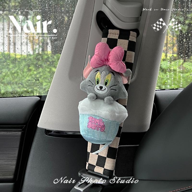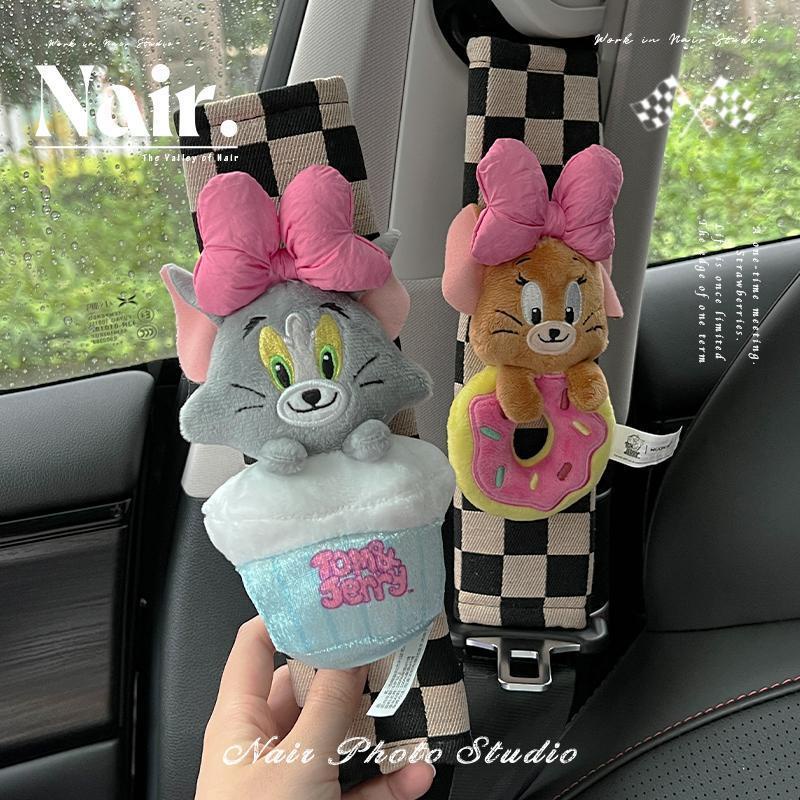 [การ์ตูนสร้างสรรค์] ทอม & เจอร์รี่ เล็กน้อย สีแดง หนังสือ สไตล์น่ารักรถที่นั่งเข็มขัดไหล่ปกเข็มขัดนิรภัยฝาครอบป้องกันพรีเมี่ยมเพชรน่ารักตกแต่งน่ารักเข็มขัดนิรภัยไหล่ป