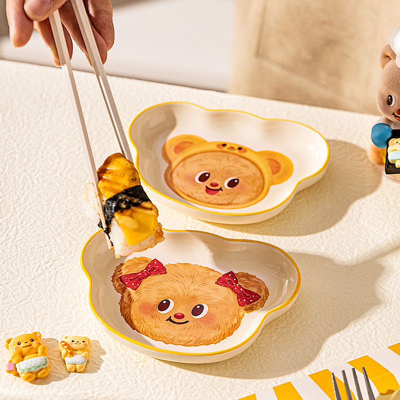 [แม่บ้านสมัยใหม่ & หมีเนย] จานจุ่มซอสถั่วเหลืองน้ําส้มสายชูจานปรุงรสจานปรุงรสจานเล็กจาน