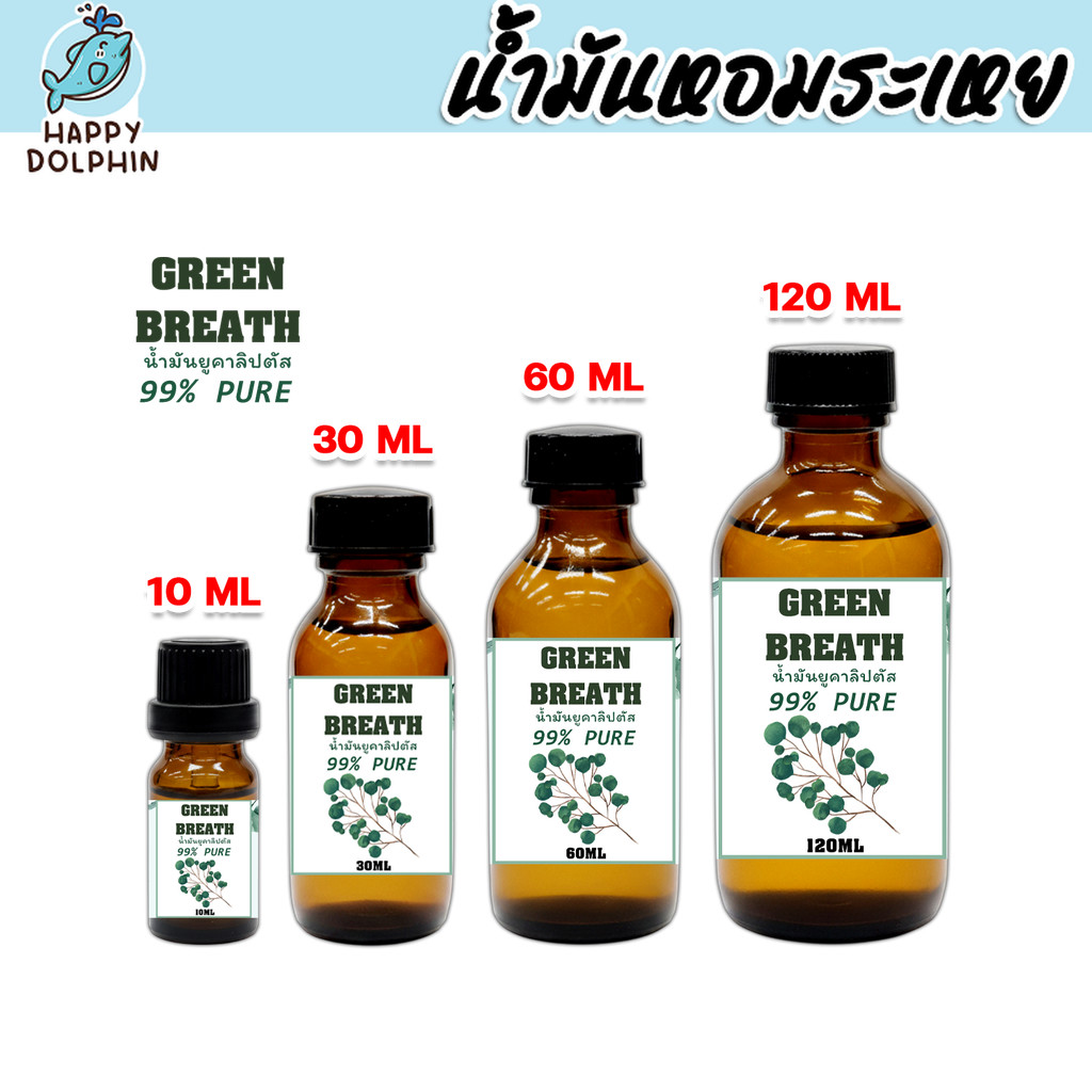 น้ำมันยูคาลิปตัสGREENBREATH 100% ขนาด 10–120 CC กลิ่นเย็นสดชื่น บรรเทาคัดจมูก ลดภูมิแพ้ ไล่ยุง