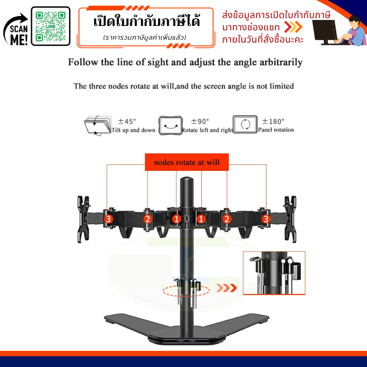 ขาตั้งจอมอนิเตอร์ 2จอ แบบวางบนโต๊ะสำหรับจอขนาด 17-27 นิ้วหมุนแขนจับได้ 360 องศา Mount Dual Monitor