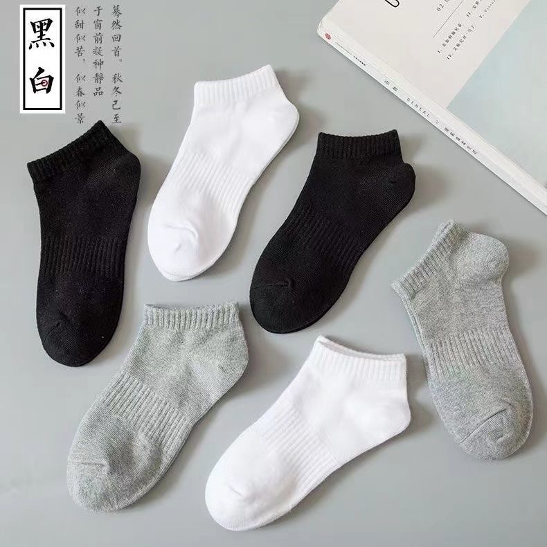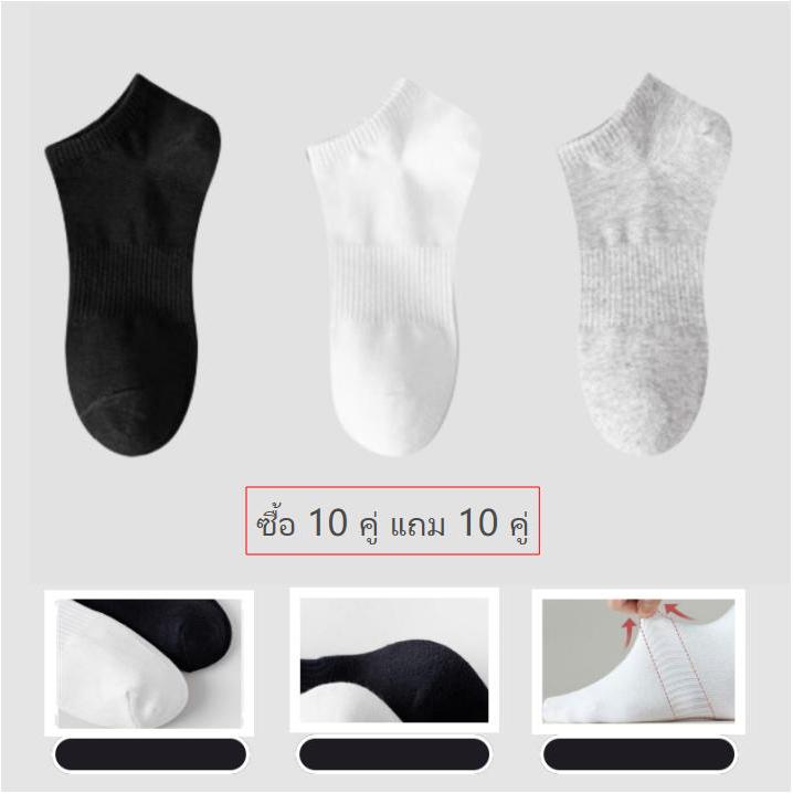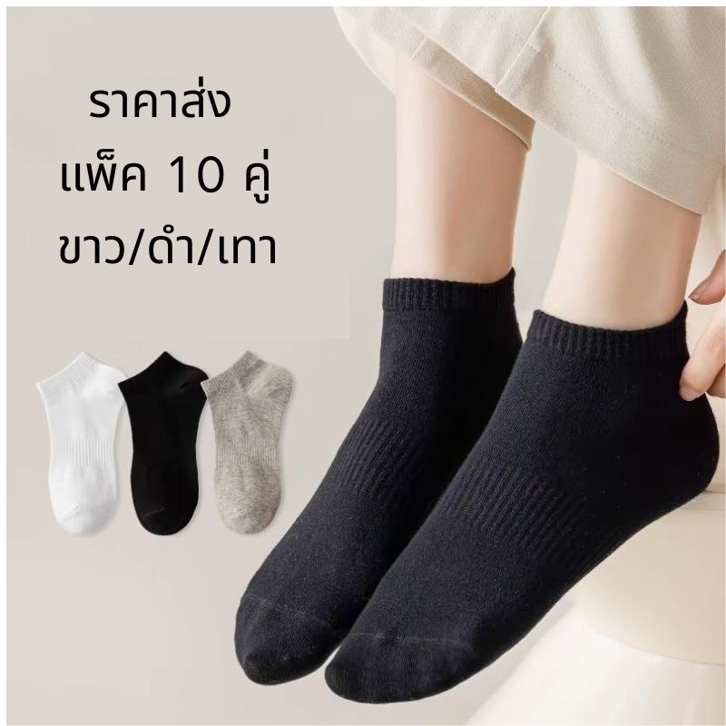 [ สีดำ 10 คู่ แถม 10 ค]ถุงเท้ากีฬา ข้อสั้น แบบบาง ดูดซับเหงื่อ เข้าได้กับทุกชุด แฟชั่นฤดูร้อน สําหรับผู้หญิง และผู้ชาย