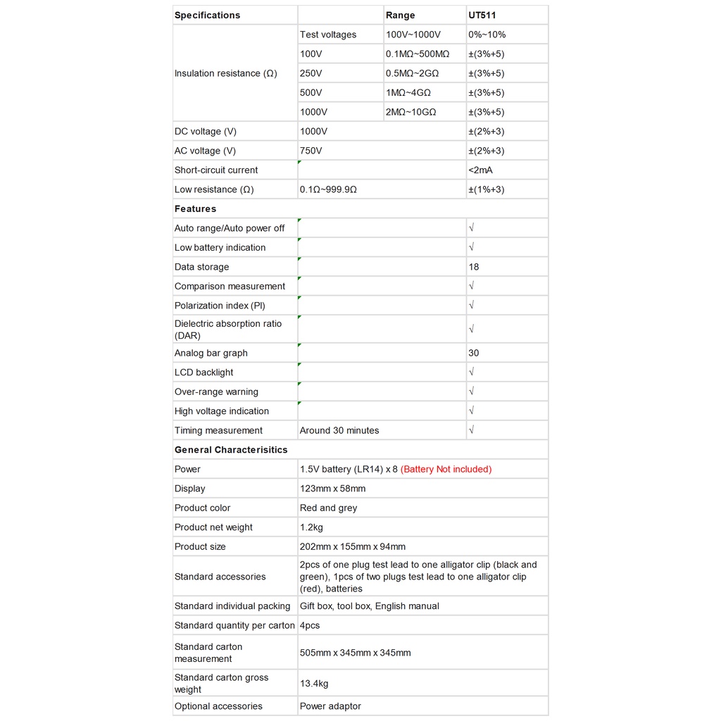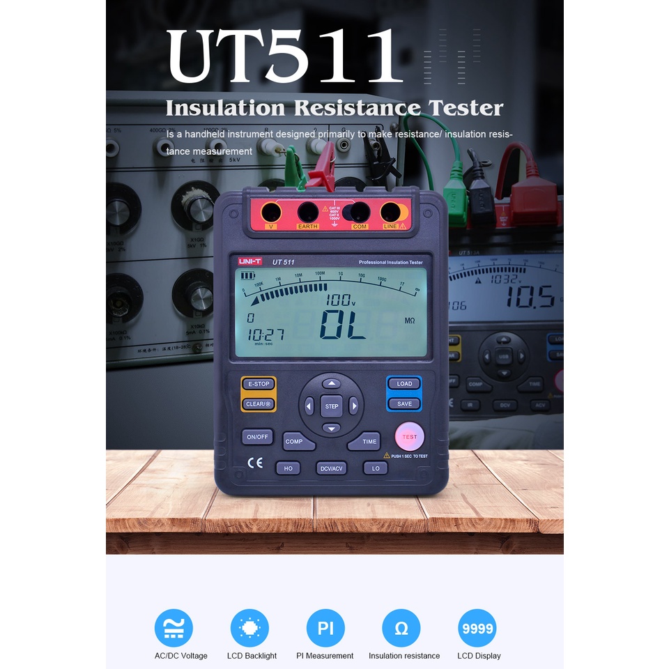 Uni-t เครื่องทดสอบความต้านทานดิจิทัล โอห์มมิเตอร์ โวลต์มิเตอร์ UT511 โอห์มต่ํา 1000V 10Gohm