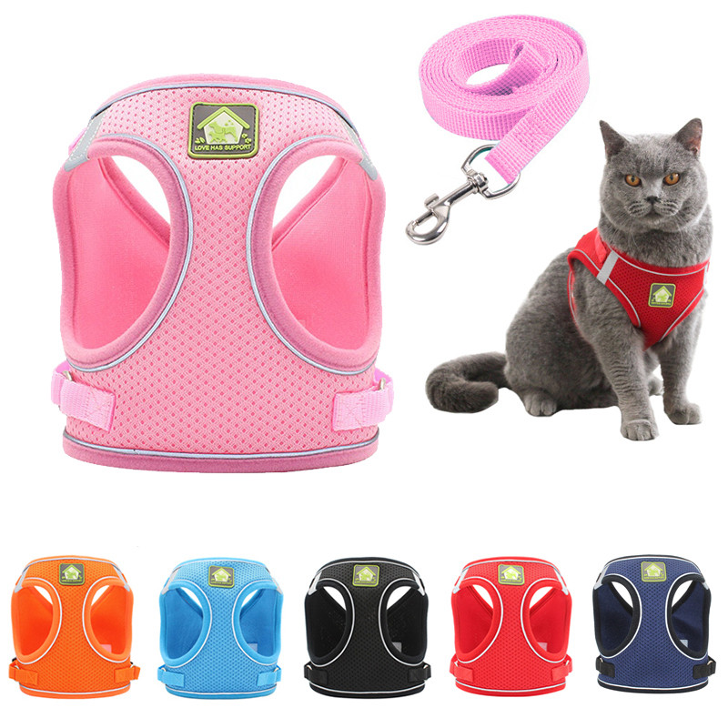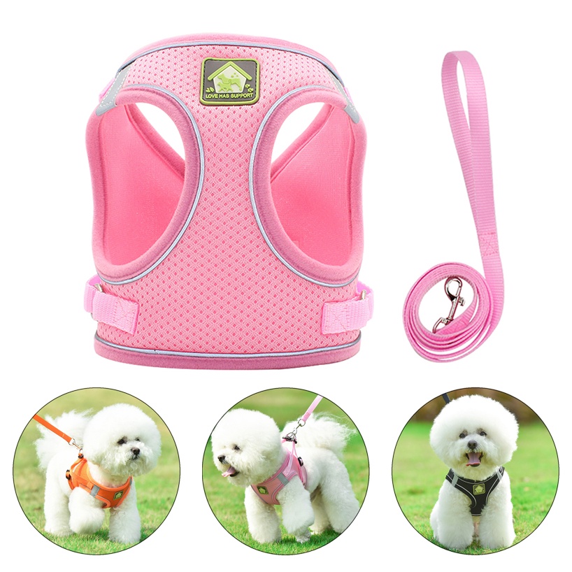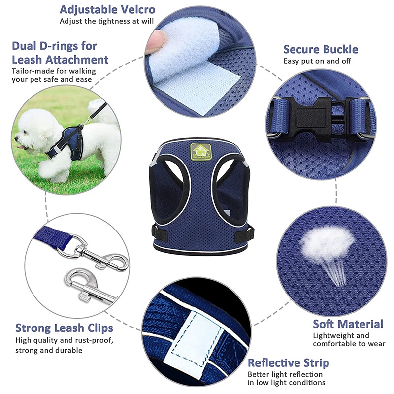 【CDDMPET】สายรัดลูกสุนัขพร้อมปลอกคอปรับได้ เสื้อกั๊กสะท้อนแสงนุ่มระบายอากาศ