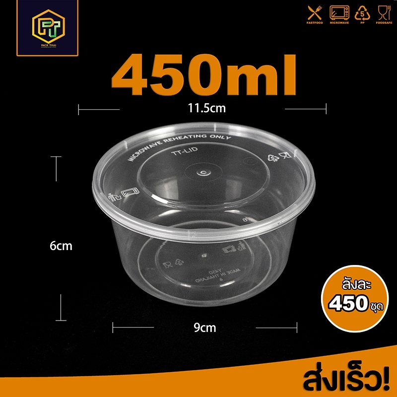 (ยกลัง)ถ้วยใส่อาหารพลาสติก 450ML สีใส ยกลัง450ชิ้น ถ้วยข้าวพลาสติก/ถ้วยขนมหวาน Y450ML-450P