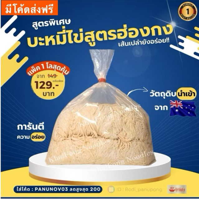 ยอดขายอันดับ1 เส้นบะหมี่ไข่ บะหมี่เป๊าะ เส้นสด 0.5,1โล สูตรฮ่องกง ผลิตเอง วัตถุดิบนำเข้าจาก ออสเตรเลีย ไม่มีวัตถุกันเสีย