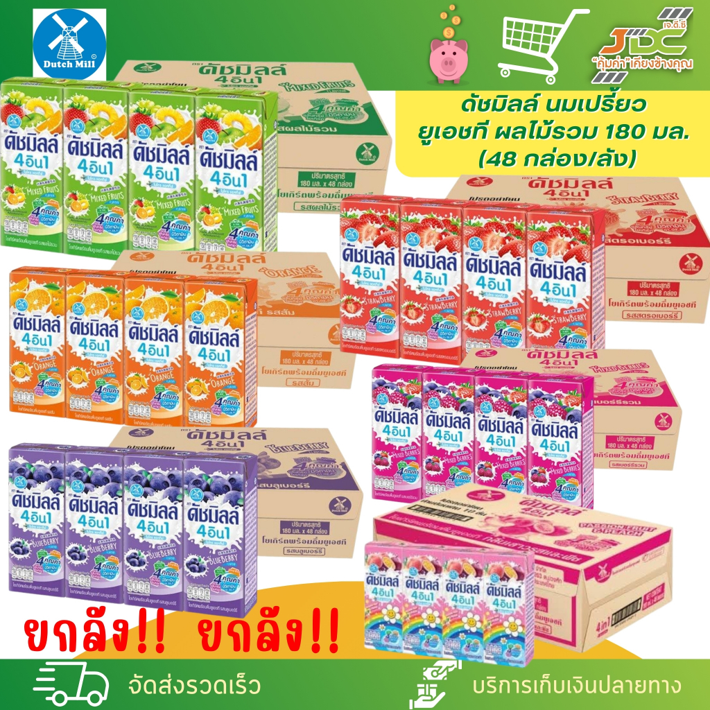 (ยกลัง)ดัชมิลล์ นมเปรี้ยว UHT 180 มล. เลือกรสชาติได้ 1ลังบรรจุ48กล่อง