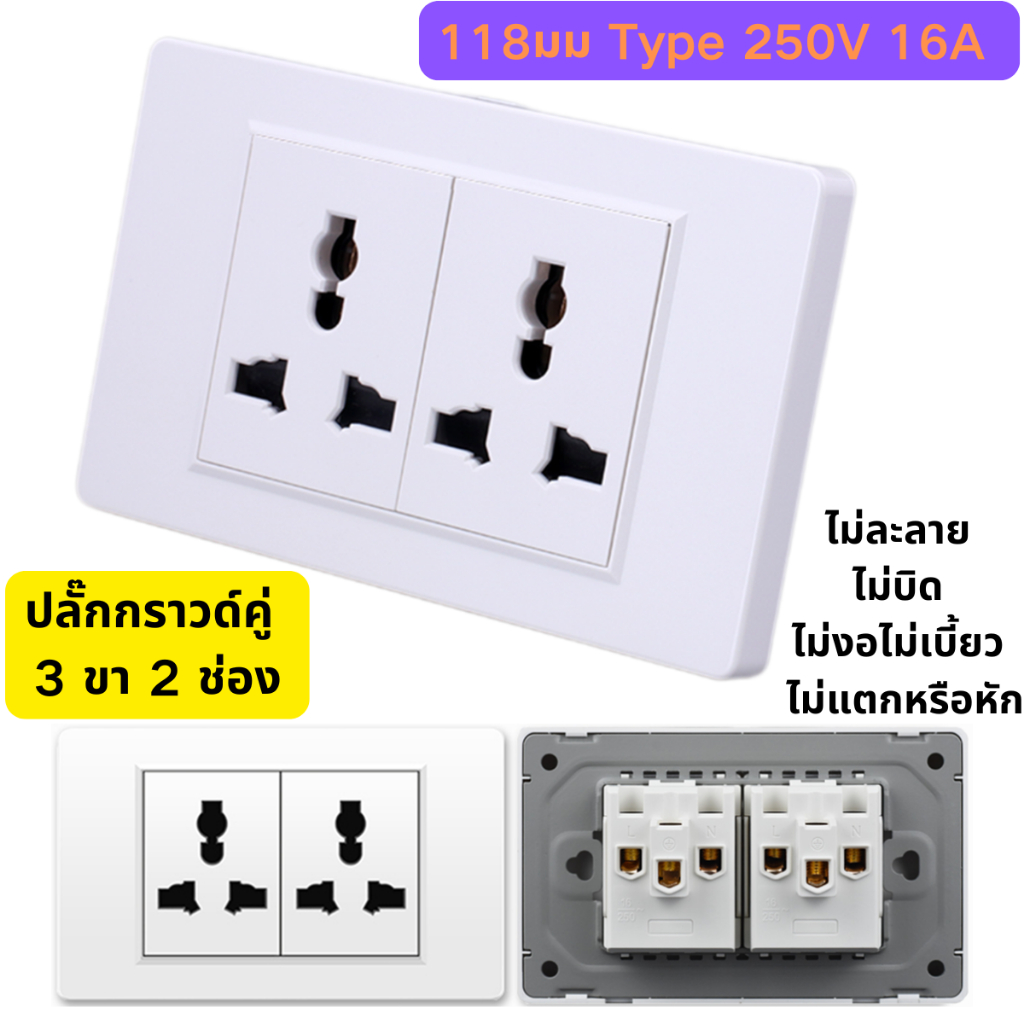 เต้ารับคู่มีกราวด์ ปลั๊กกราวด์คู่ เต้ารับคู่ ปลั๊กไฟ 3 ขา หัวปลั๊กไฟ ปลั๊กไฟบ้าน เต้ารับปลั๊กไฟ ปลั๊กไฟตัวเมีย ชุดปลั๊กไฟบ้าน Double Universal Sockets เต้ารับยูนิเวอร์แซล