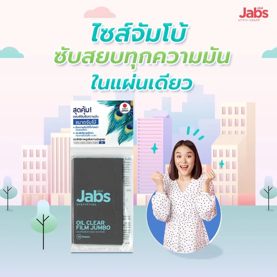 Jabs Oil Clear Film แจ๊บส์ แผ่นฟิล์มซับมัน ซับหน้ามัน แผ่นซับหน้า กระดาษซับมัน (มีให้เลือก 5 แบบ)