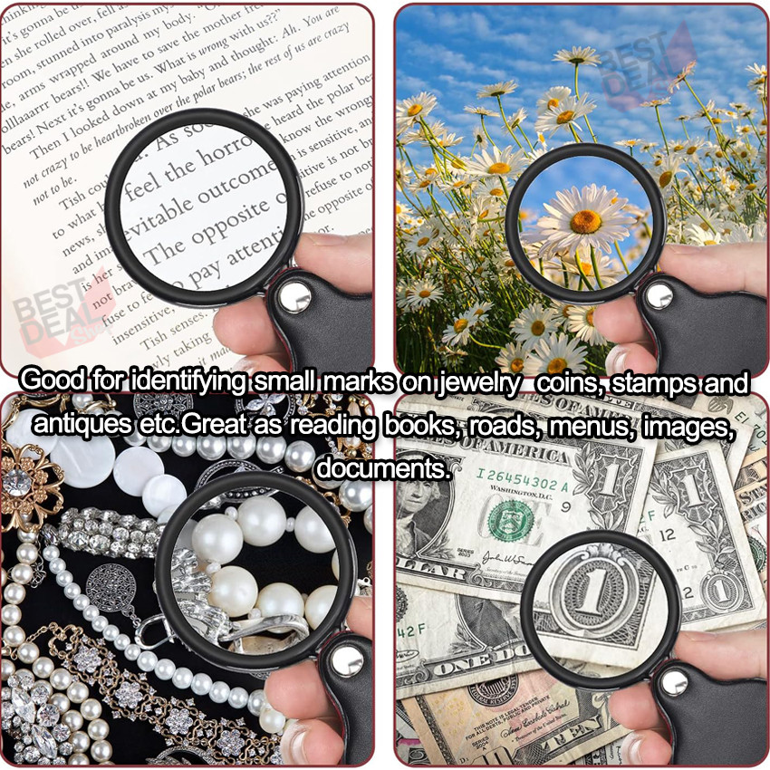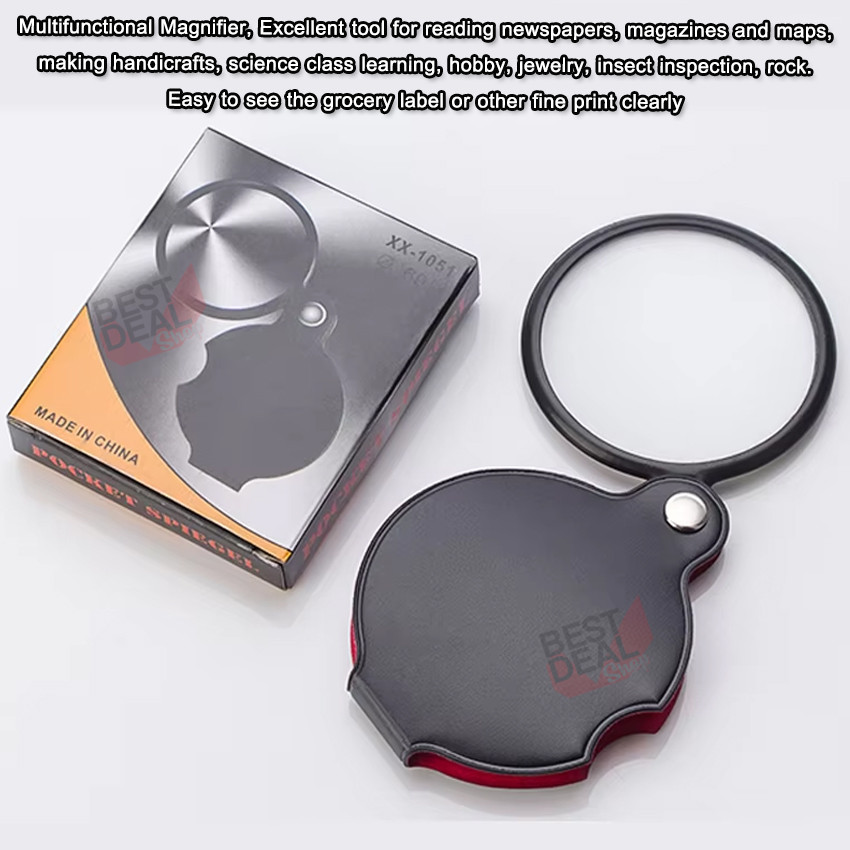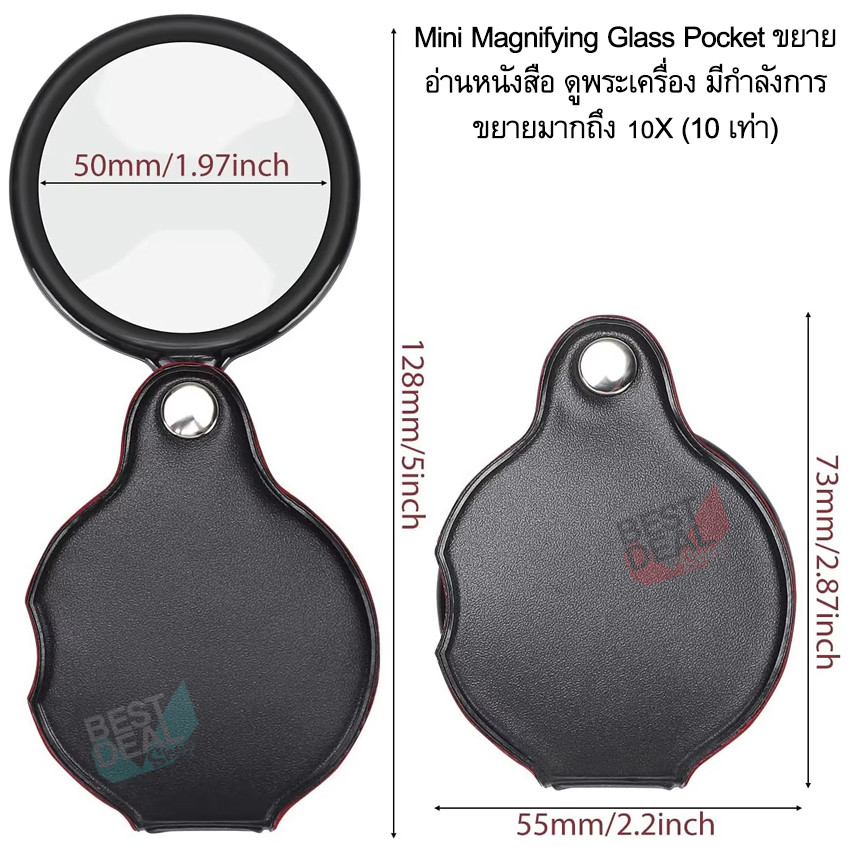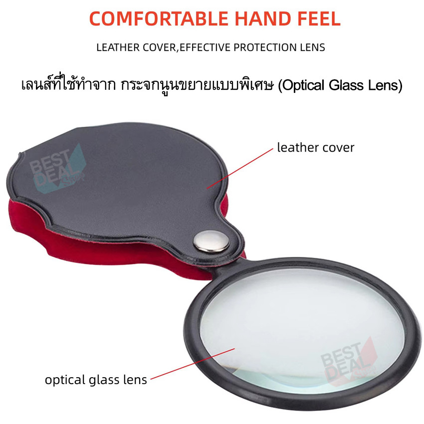 Foldable Glass Loupe 10X 50mm แว่นขยายแบบพับได้ เลนส์แก้ว 5 ซม. ขยาย 10 เท่า ใช้ส่องพระ อ่านหนังสือ อ่านหนังสือ ส่องอ่าน