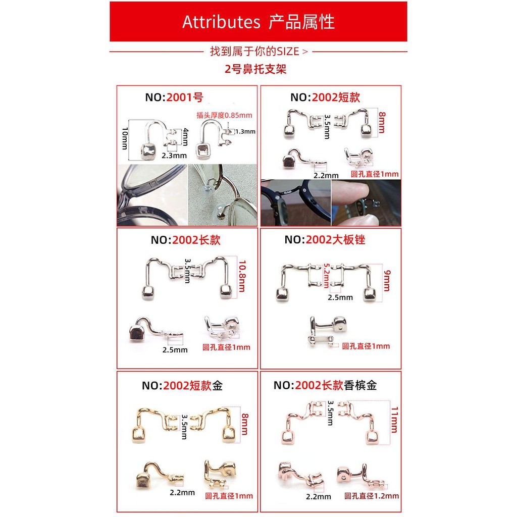 กรอบแว่นตาวงเล็บโลหะแผ่นจมูกวงเล็บเด็กผู้ใหญ่แว่นตาจมูกวงเล็บสะพานจมูกกรอบแผ่นจมูกด้านบนสกรู