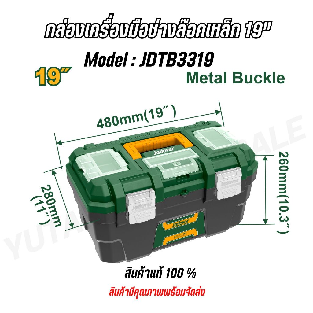 JADEVER ชุดกล่องเครื่องมือพลาสติก ตัวล็อกเหล็ก 13 นิ้ว + 16 นิ้ว + 19 นิ้ว JDTB4103