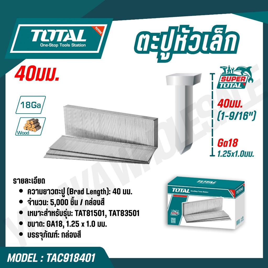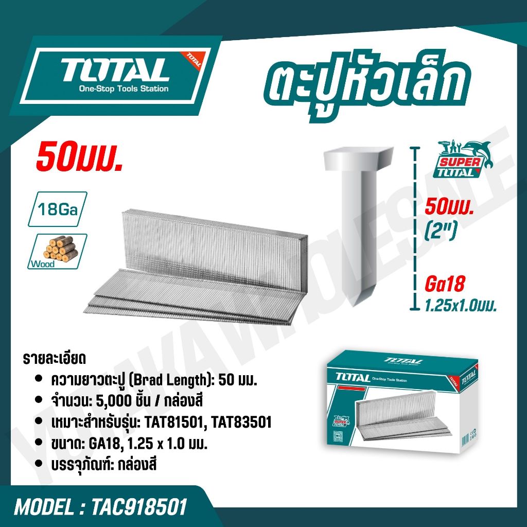TOTAL ตะปูหัวเล็ก 20,25,35,38,40,50 mm รุ่น TAC918201 TAC918251 TAC918351 (BRAD NAIL)
