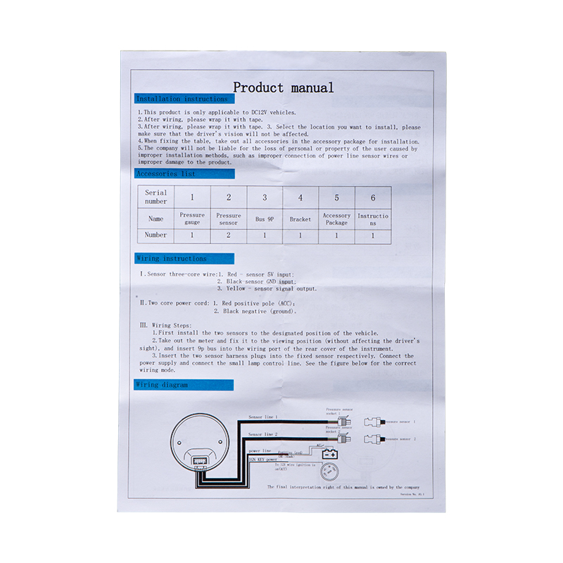 52 มม.จอแสดงผลคู่ Air Suspension Gauge Air Ride Air Pressure Gauge PSI 2 ชิ้น 1/8NPT เซ็นเซอร์และลวด 5 ม.