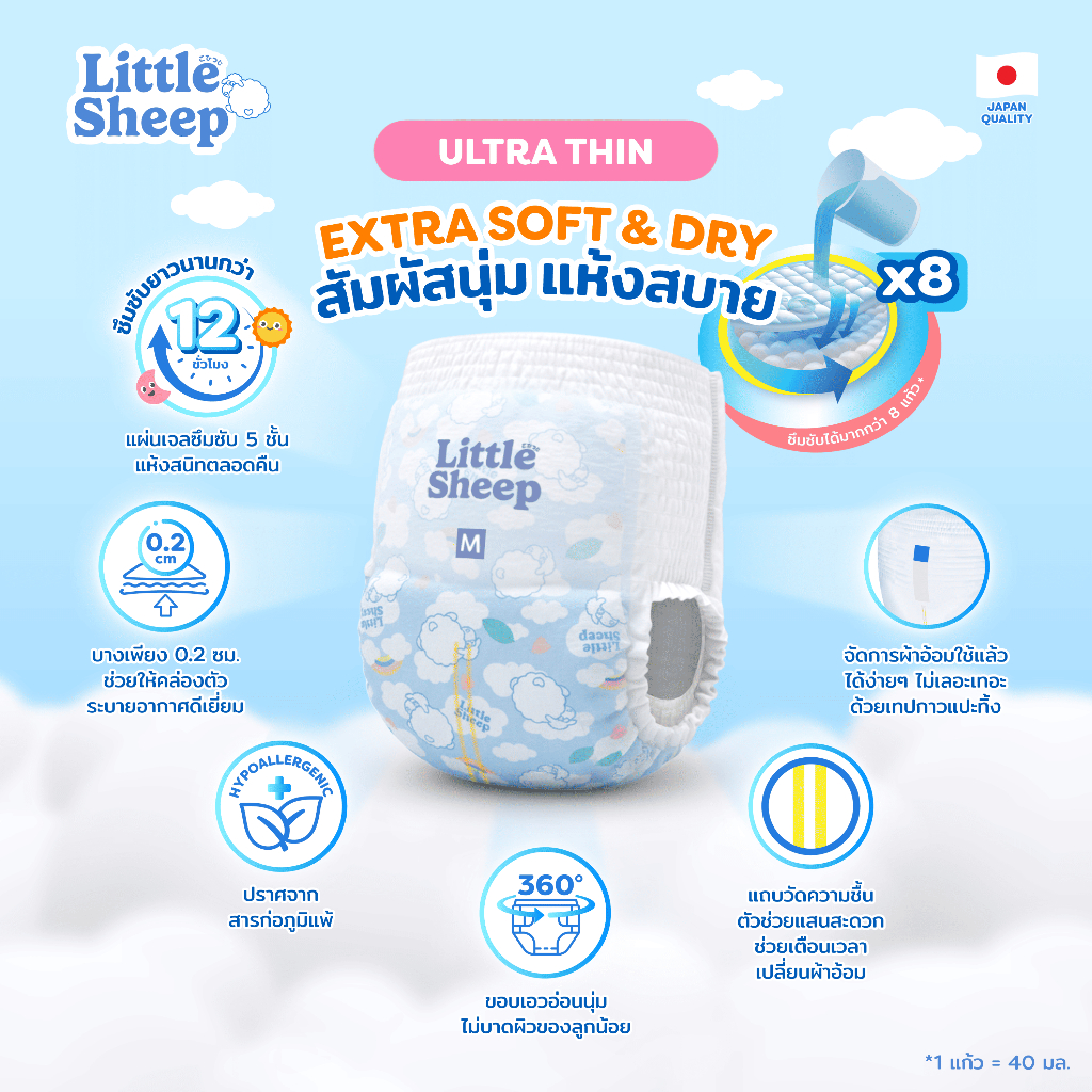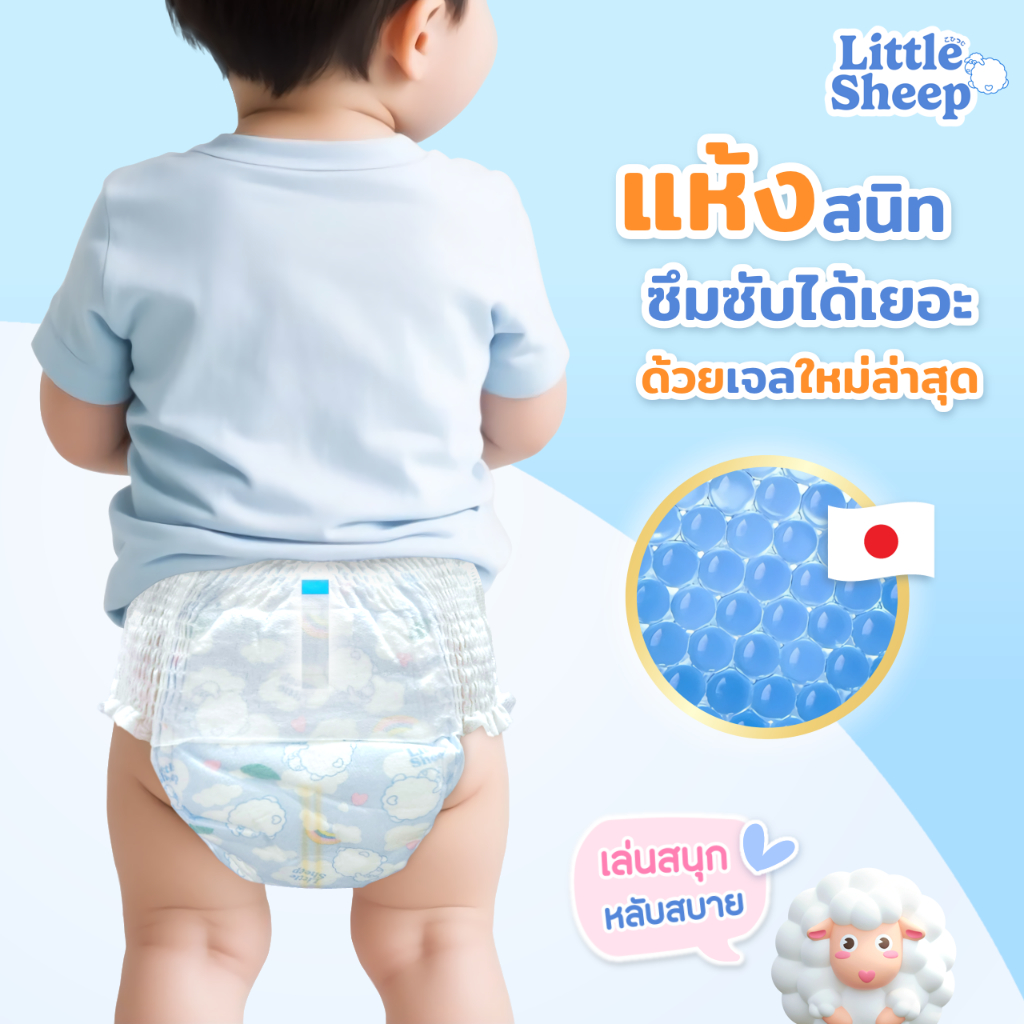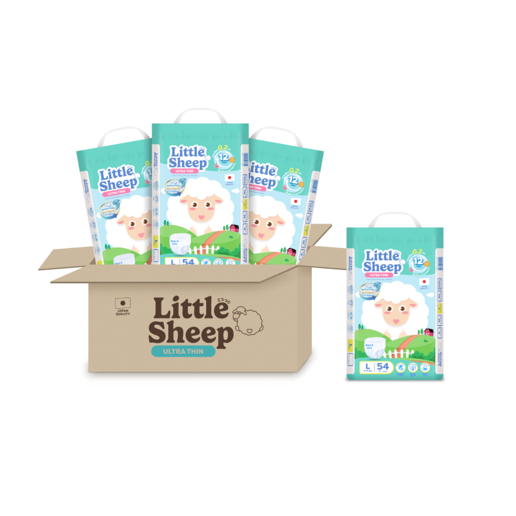 [4 แถม 4] Little Sheep L x4 แพ็ก 216 ชิ้น ฟรีทิชชู่เช็ดหน้า x4 กางเกงผ้าอ้อมเด็ก บาง นุ่ม แห้งสบาย [ส่งฟรี]