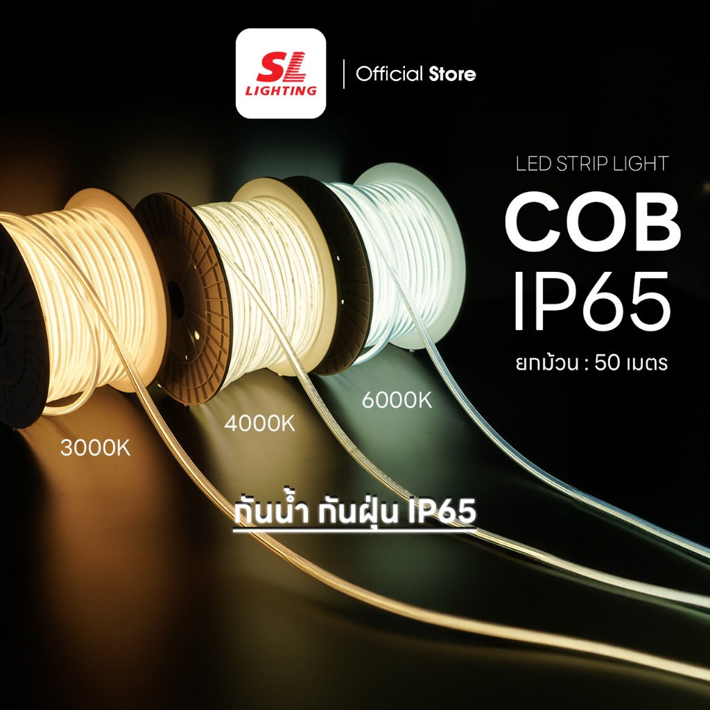 SL LIGHTING | LED Strip Light COB IP65 220V 50M ไฟเส้นแอลอีดี สวย สว่าง สมูท IP65 กันน้ำ ยกม้วน 50 เมตร