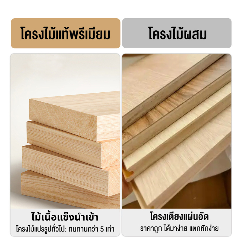 Somiliving​​ ไม้ยางพารา/ไม้สน 1.5/1.8ม.5ฟุต/6ฟุต. ​​พนักปรับระดับ+กันชื้น/ยุง+ระบายอากาศดี+รับน้ำหนักมาก​​ ดีไซน์มินิมอล