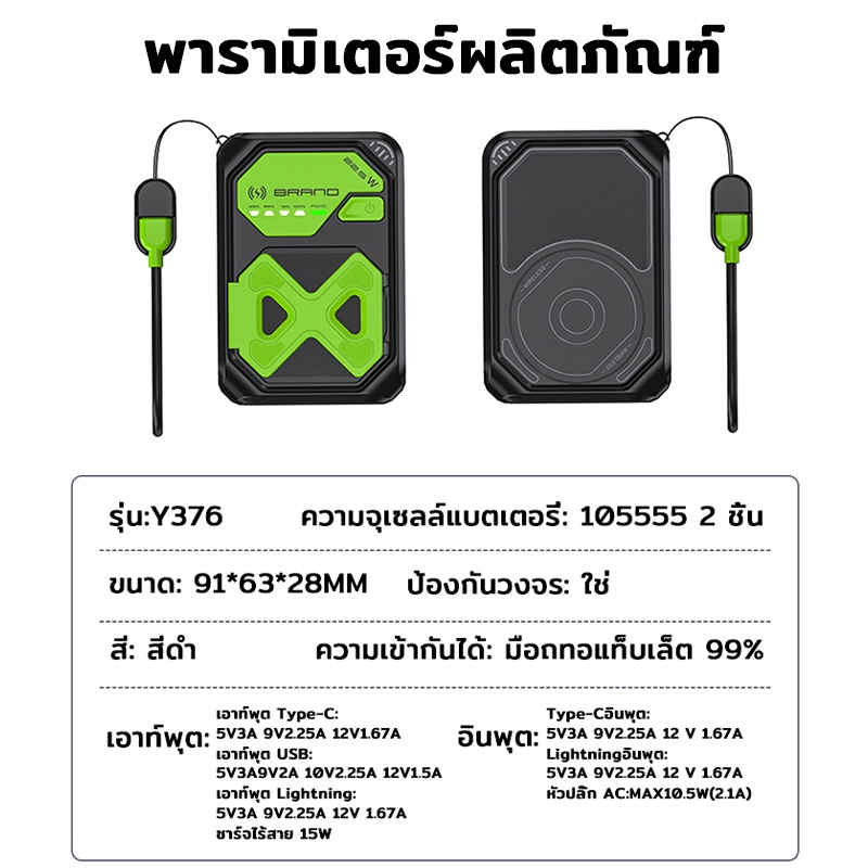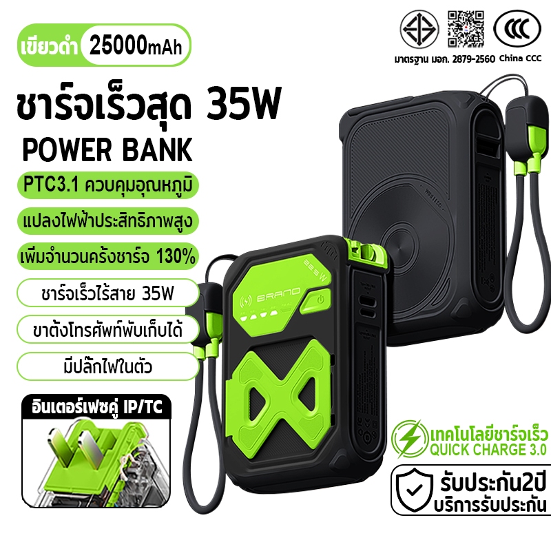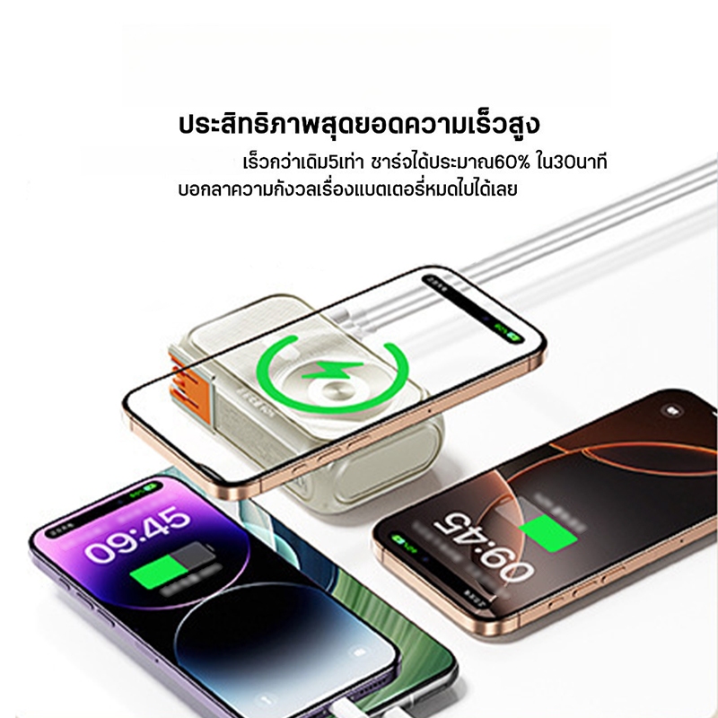 【CCC&มอก】ประกัน2ปี Powerbank ไร้สายสุดเท่ แท้25000mAh PD35W ชาร์จเร็วไร้สาย Magnetic แบตสํารอง มีสายในตัว พาวเวอร์แบงค์