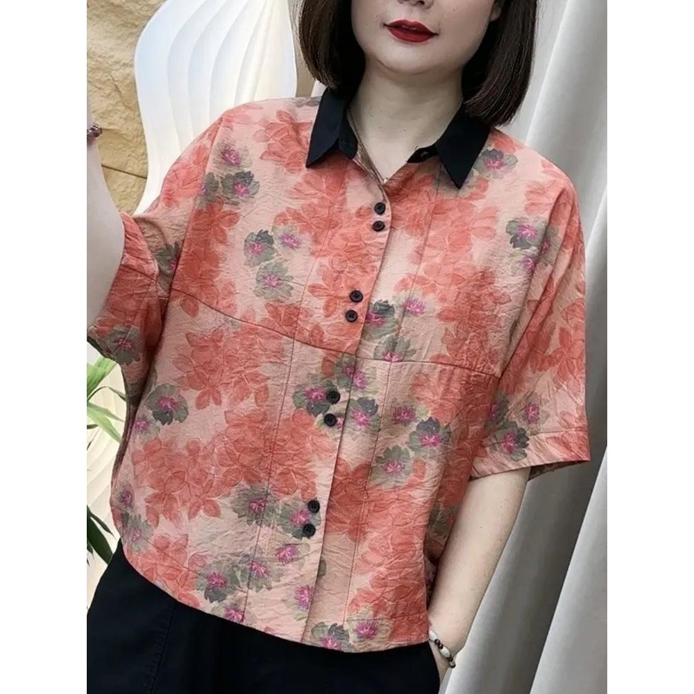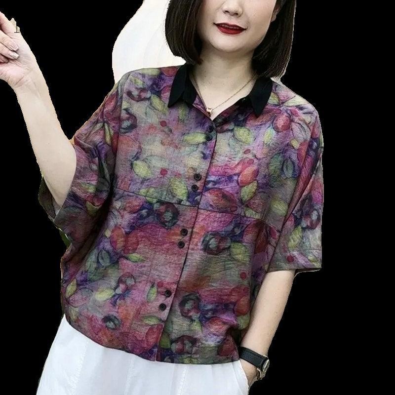 [คลังสินค้าพร้อม]เสื้อให้แม่ ชุดคุณแม่ เสื้อคนอายุ40 เสื้อเเม่ เสื้อผ้าสตรีวัย 40 เสื้อวัย50 เสื้อคนอายุ60 เสื้อยืดแฟชั่นพิมพ์ลายlapel Motherเสื้อยืดฤดูร้อนรูปแบบใหม่ลดอายุSlimmerดูกลางAg