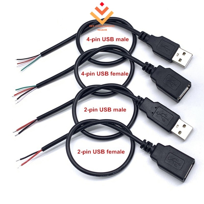 0.3เมตร/1เมตร/2เมตรสายแหล่งจ่ายไฟ2/4ขา ยูเอสบี 2.0หญิงชายเปลือยลวดแจ็คชาร์จสายไฟขยายเชื่อมต่อ ทําเอง 5โวลต์สาย