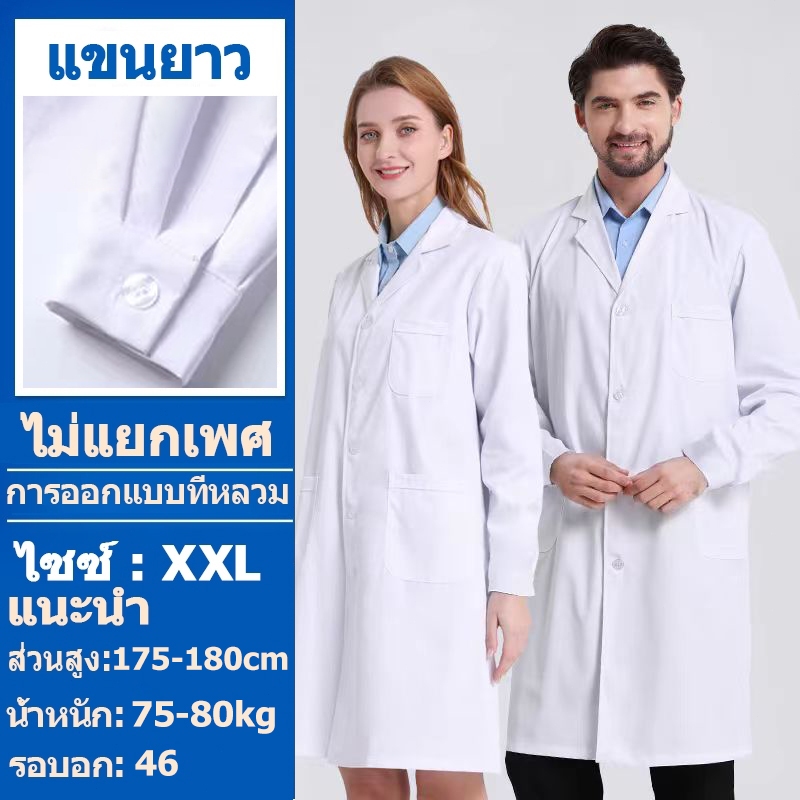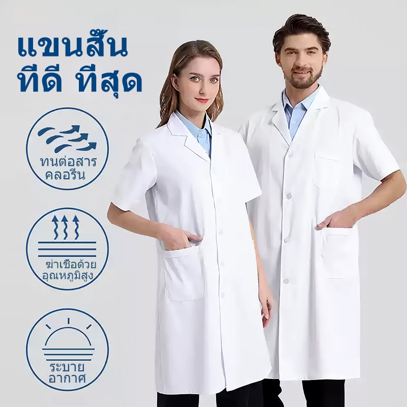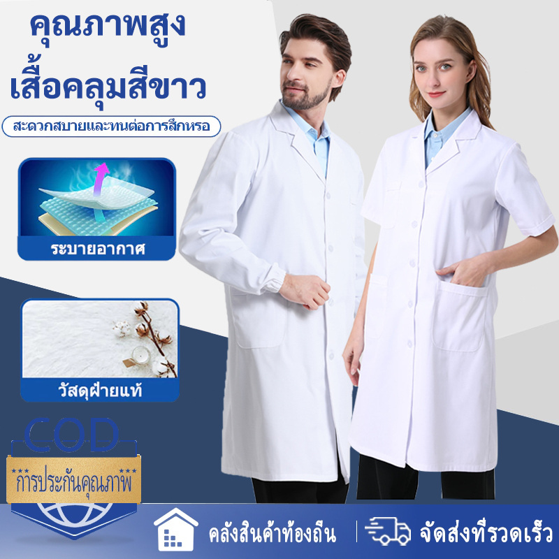เสื้อกาวน์ เสื้อกราวน์แพทย์ ชาย หญิง ใช้ได้หมด เสื้อพยาบาล เนื้อดีคงทน เหมาะสำหรับแพทย์พยาบาล ชุดแพทย์