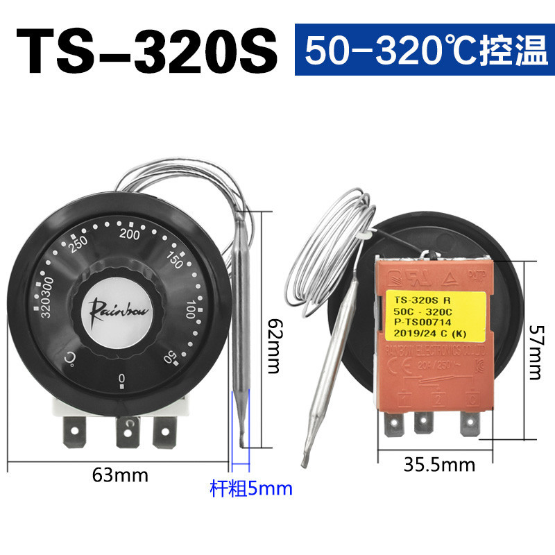 ลูกบิดเทอร์โมสวิตช์ควบคุมอุณหภูมิ สีรุ้ง Ts-120sr-320sr-120sb-320sb-200sb-120s-200s-320s-c-r-b