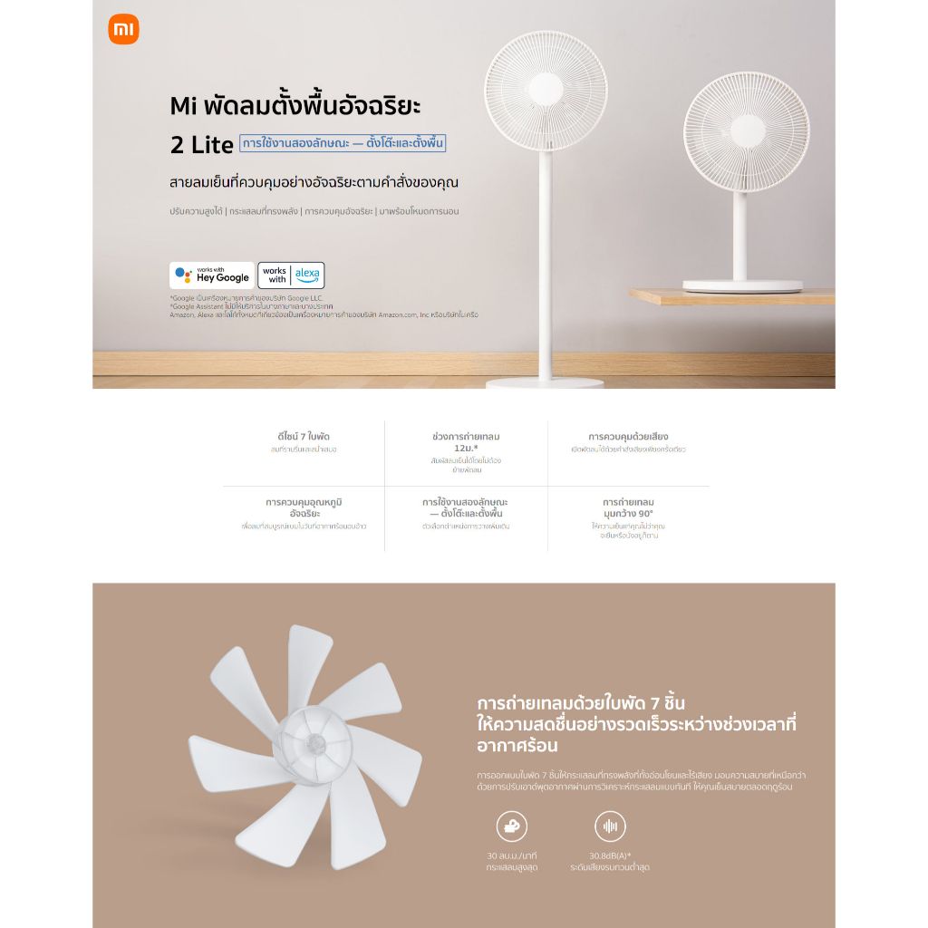Xiaomi Smart Standing Fan 2 Lite พัดลมตั้งพื้นอัจฉริยะ | ปรับความสูงได้ | ใช้งานผ่านแอพ | พัดลม xiaomi | ประกันศูนย์ 1ปี