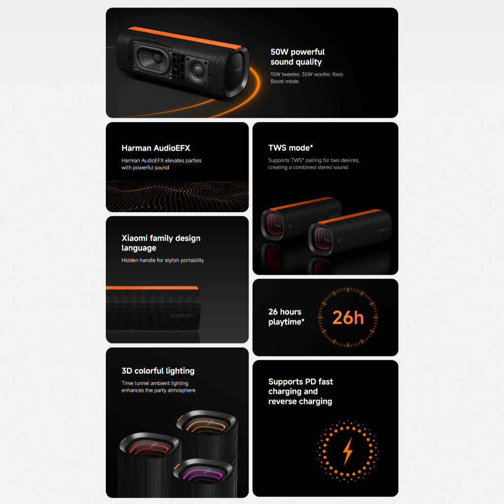 Xiaomi Sound Party ลําโพง Bluetooth Speaker | Harman AudioEFX การปรับแต่ง | กำลังไฟ 50W | เอฟเฟกต์แสง3มิติ | ลำโพงบลูทูธ