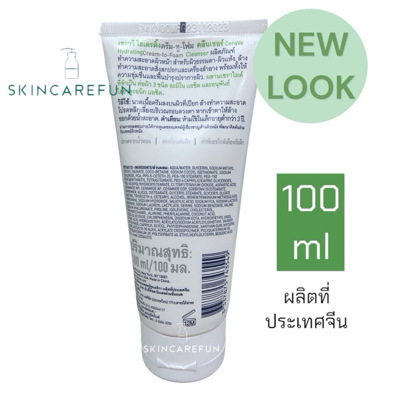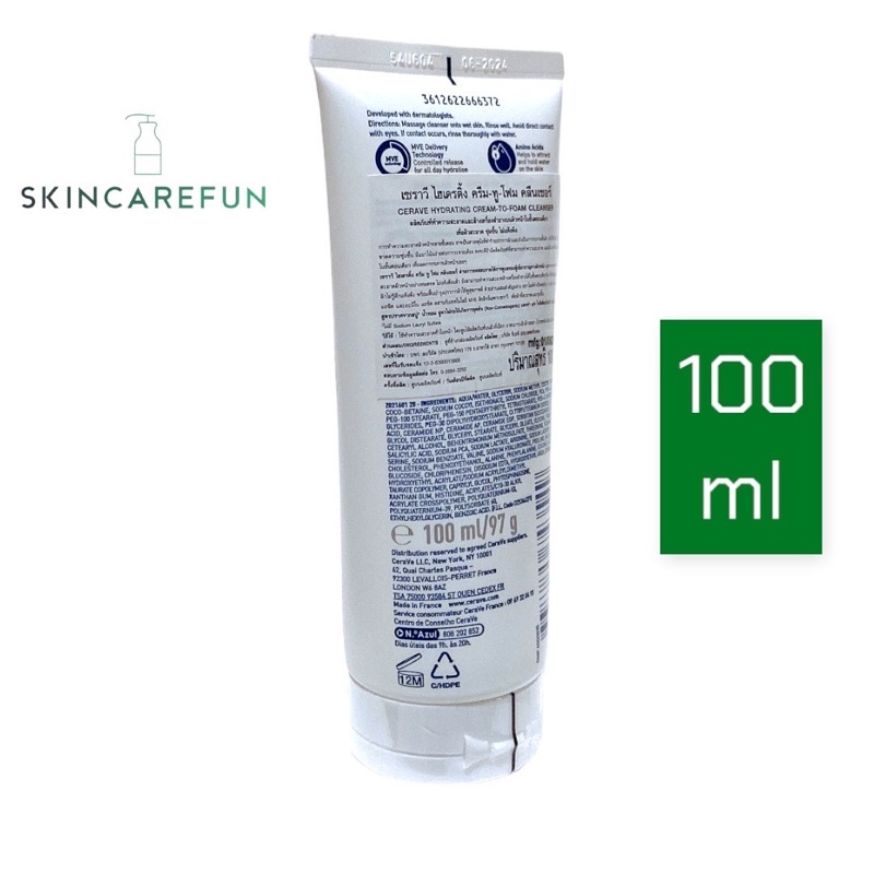 (แท้/พร้อมส่ง) CERAVE Hydrating Cream To Foam 100 ml. เซราวี ไฮเดรติ้งครีมทูโฟมคลีนเซอร์ cerave creamtofoam