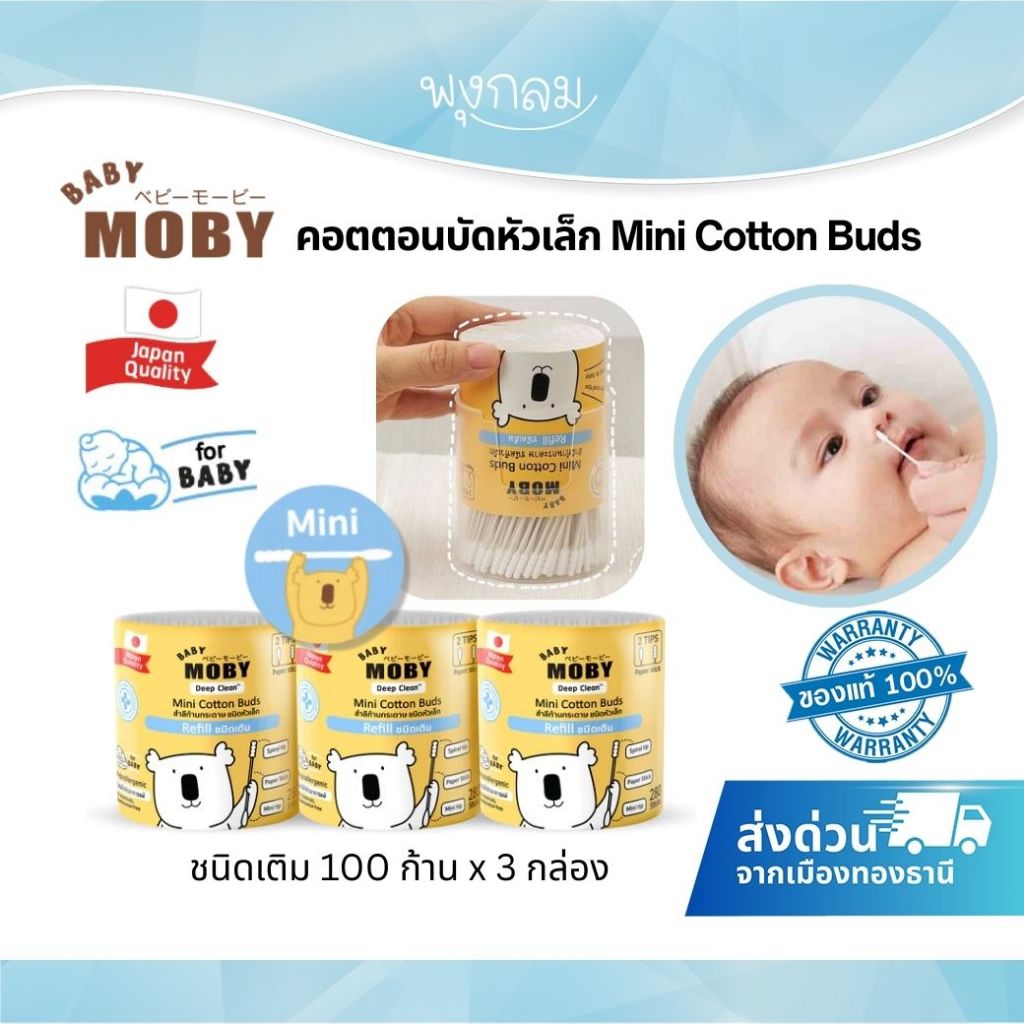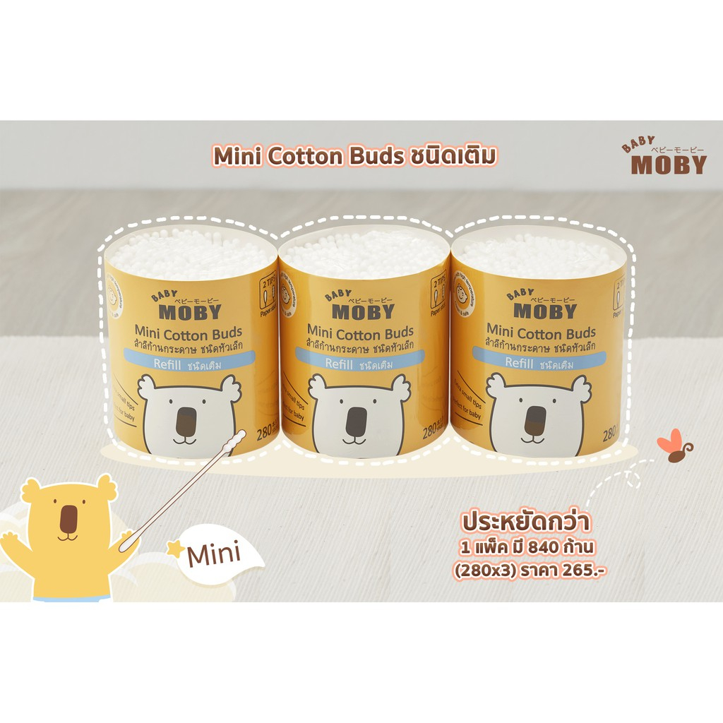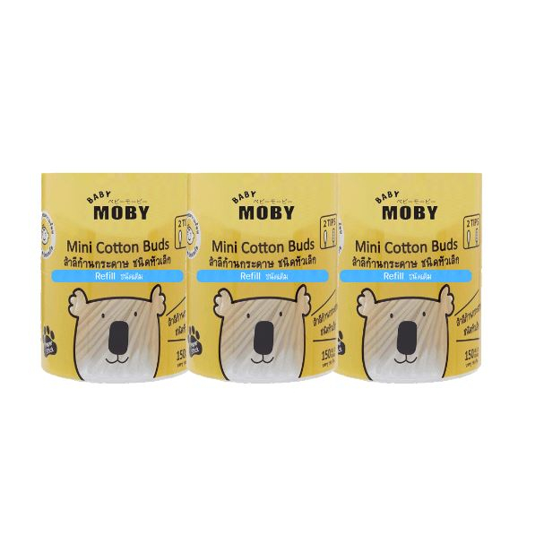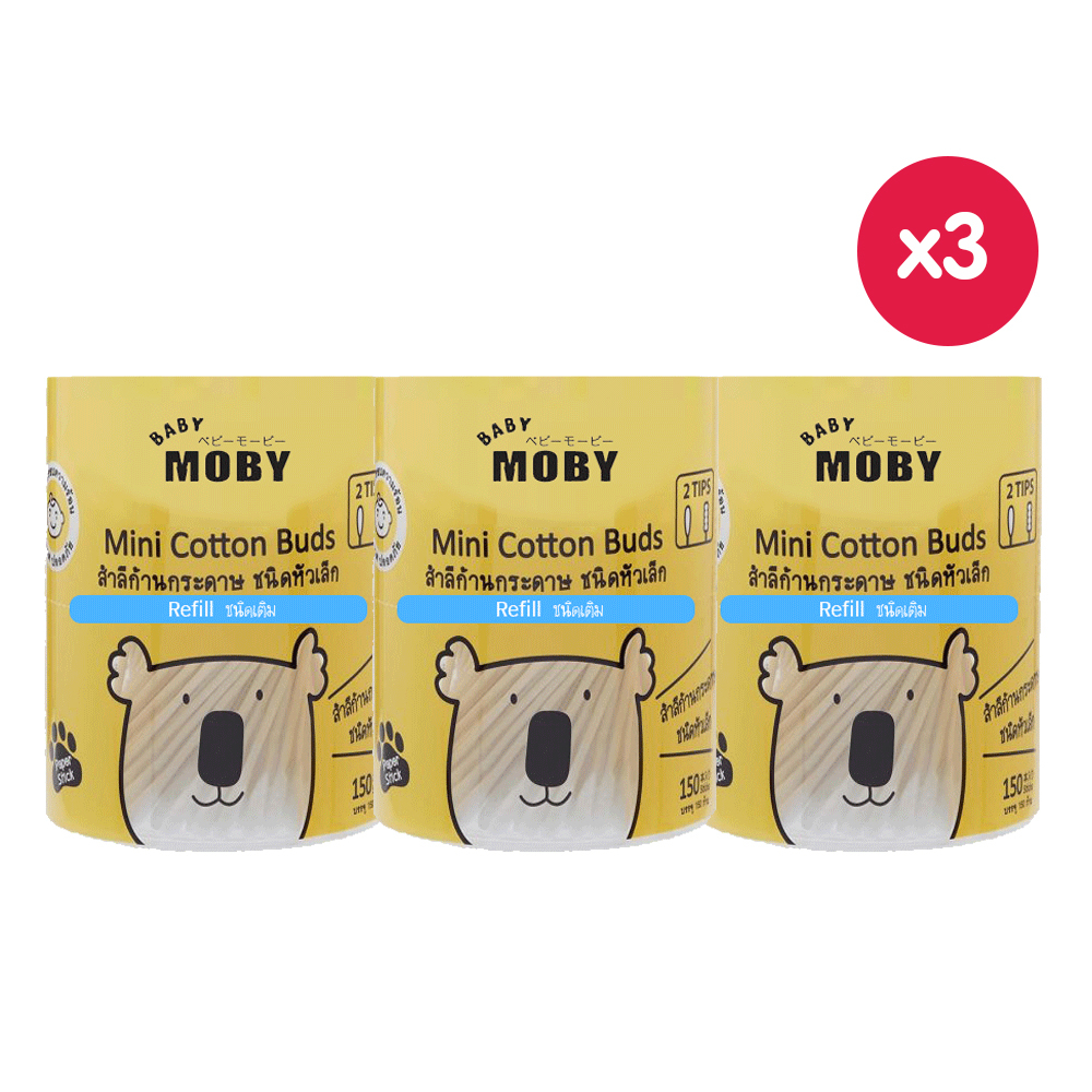 BABY MOBY สำลีก้าน คอตตอนบัด หัวเล็ก (แบบรีฟิว) (100 ก้าน x 3 กล่อง)
