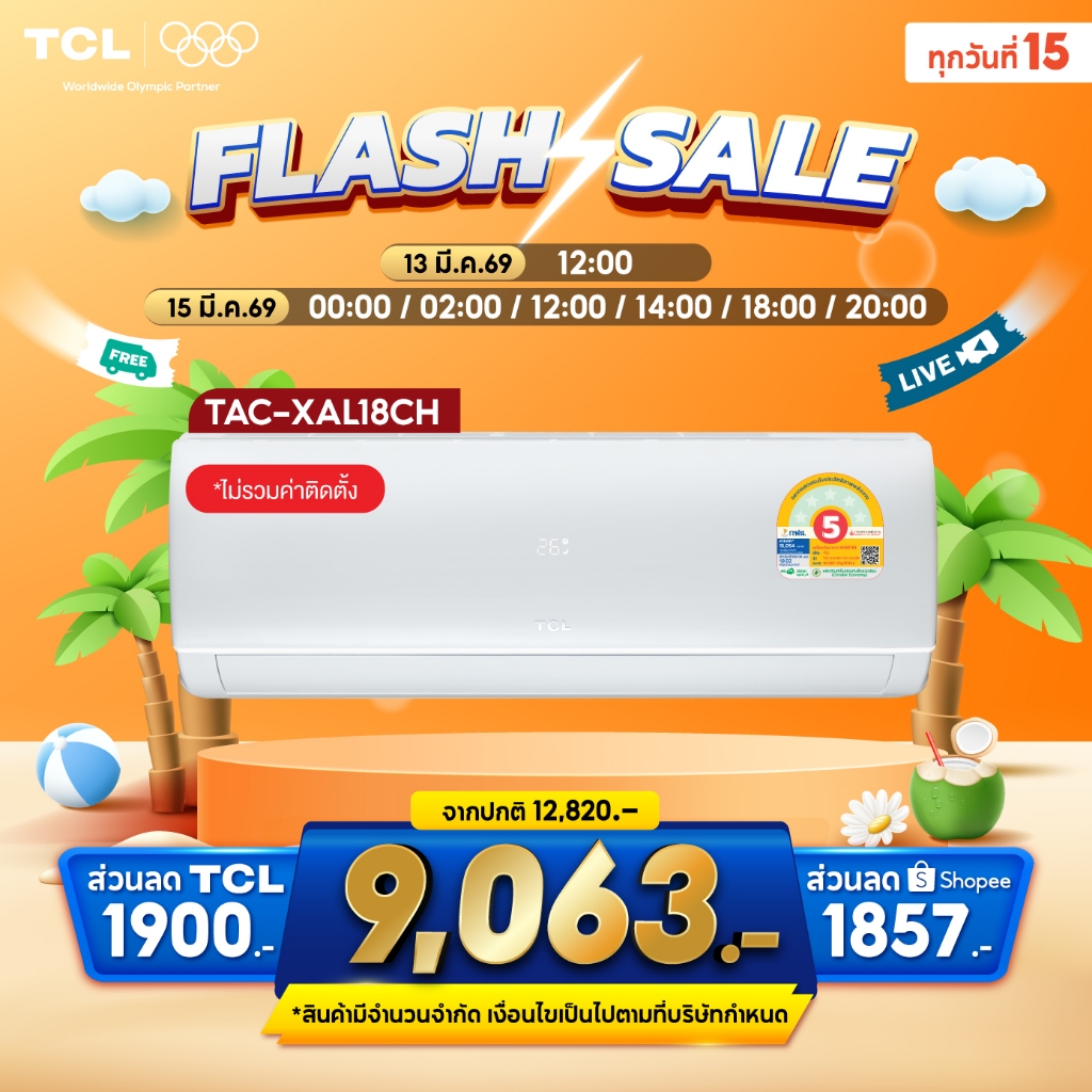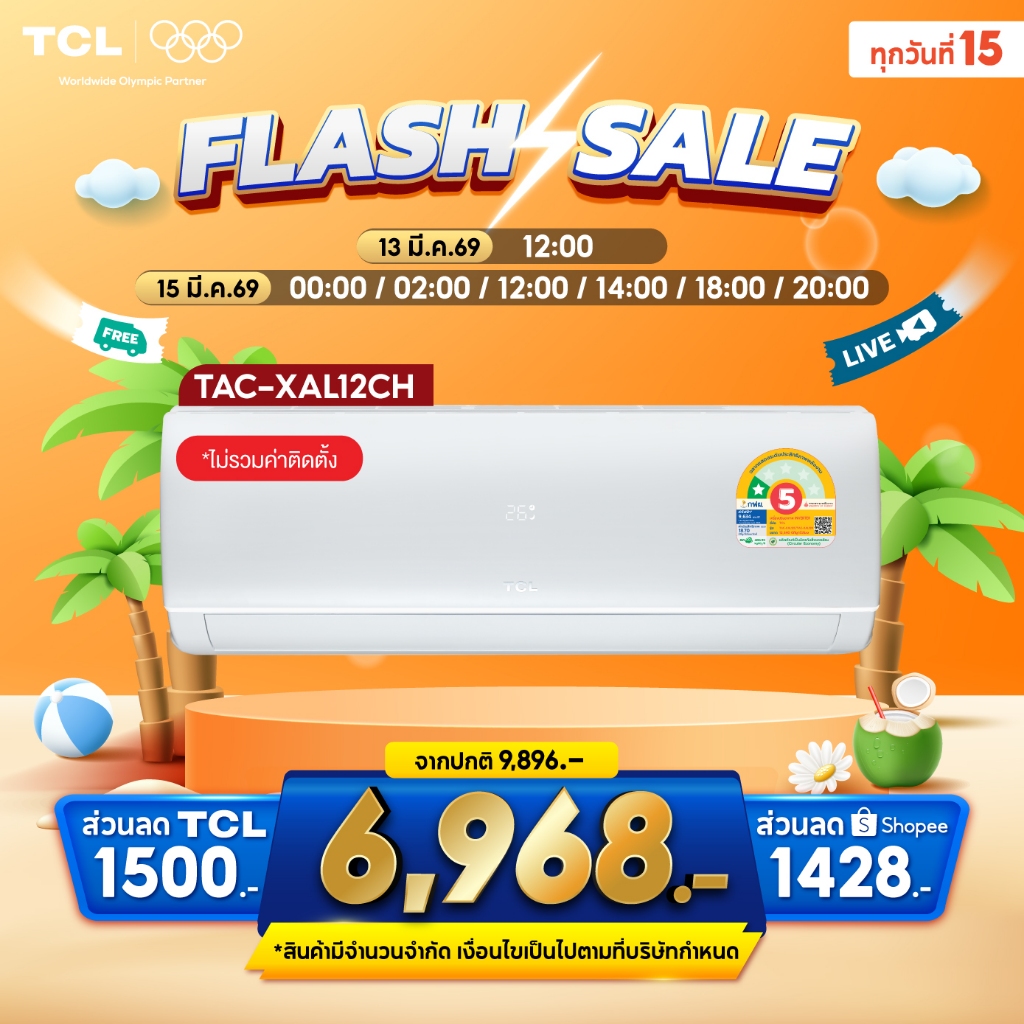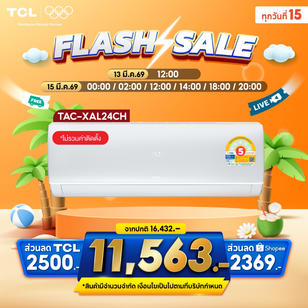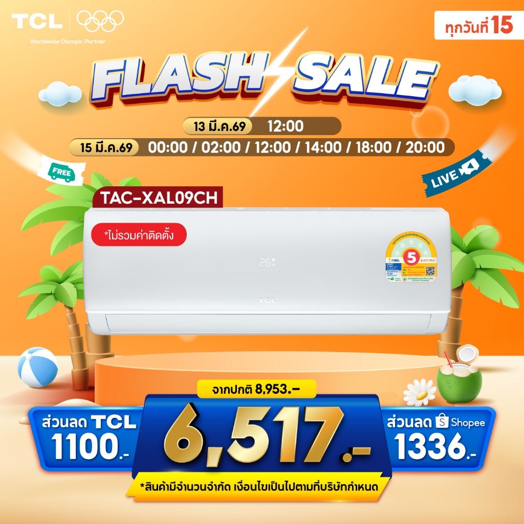 TCL แอร์ Inverter TAC-XALCH 9,000–24,000 BTU เย็นเร็ว ประหยัดไฟ เบอร์5 ผ่อน0% 10เดือน