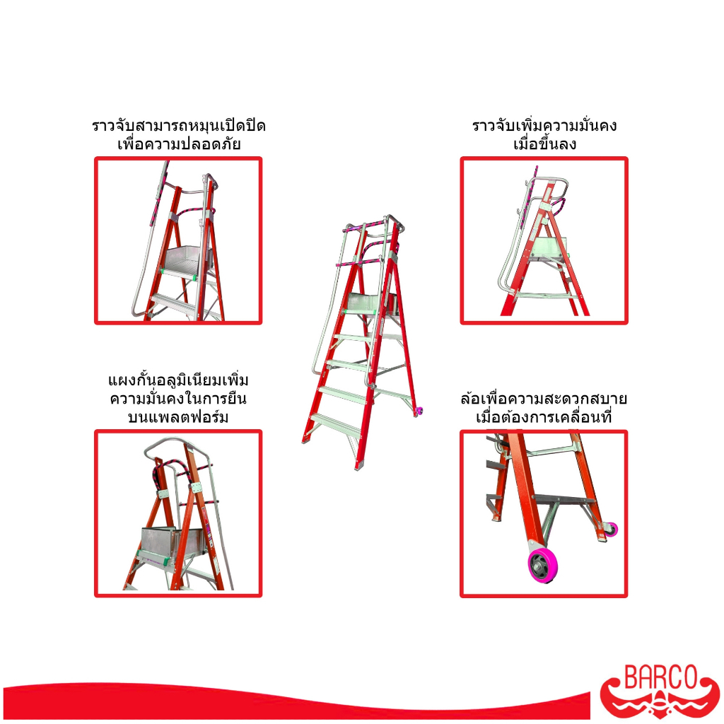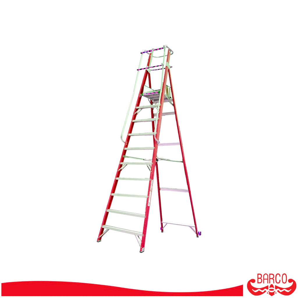 BARCO บันไดแพลตฟอร์มไฟเบอร์กลาสติดล้อ 10 ขั้น 3.0 ม.