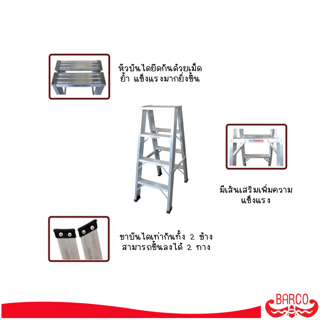 BARCO บันไดอลูมิเนียมทรงเอ ขึ้น2ทาง 16 ขั้น 4.8 ม.