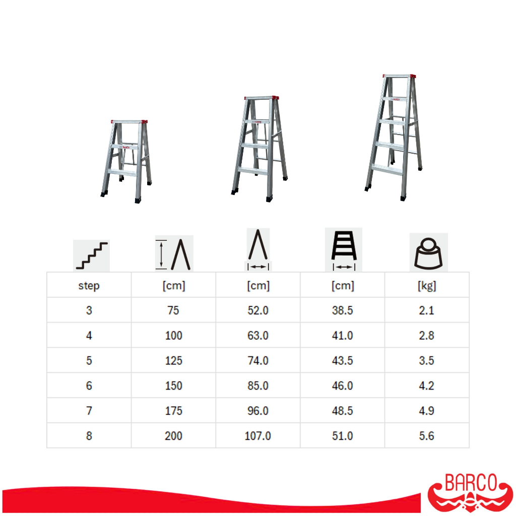 BARCO LITE บันไดอลูมิเนียม ขึ้น 2 ทาง 5 ขั้น 1.25 เมตร