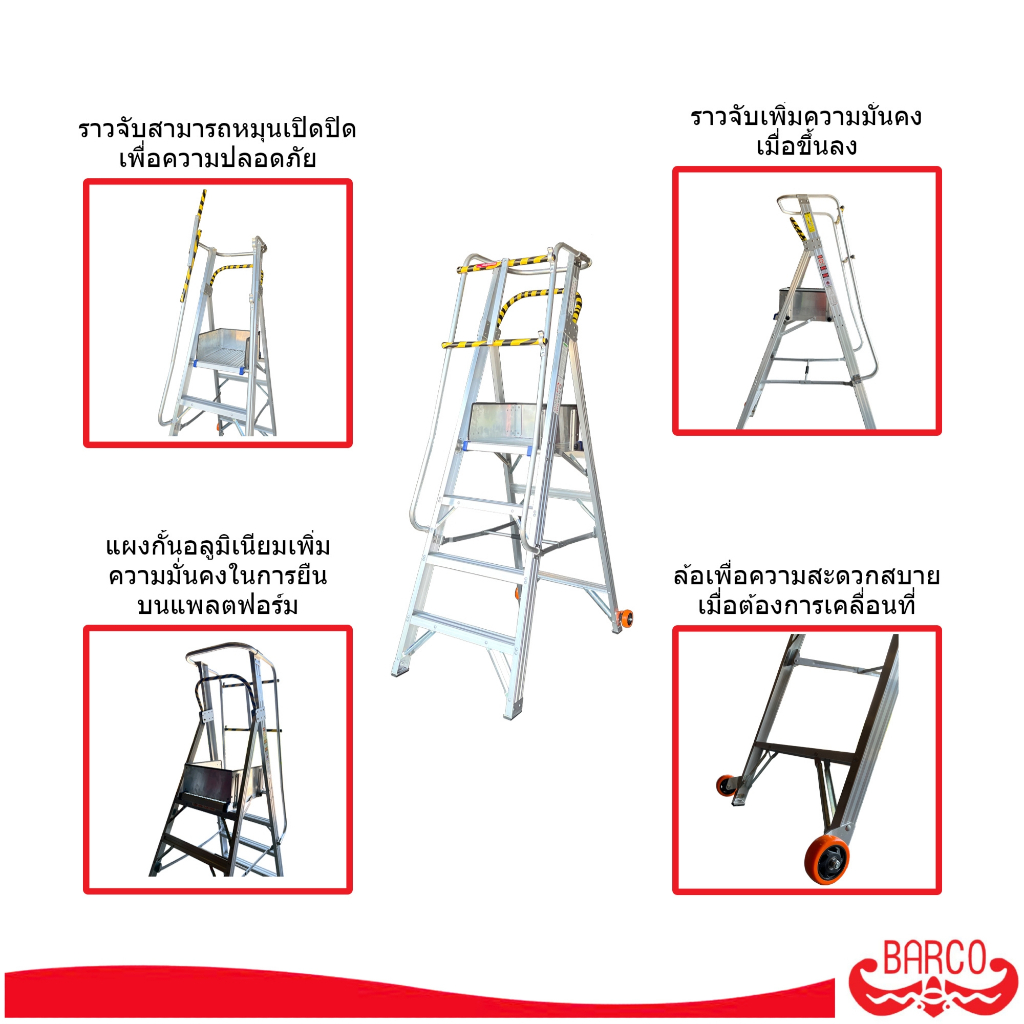 BARCO บันไดแพลตฟอร์มอลูมิเนียมติดล้อ 7 ขั้น 2.1 ม.