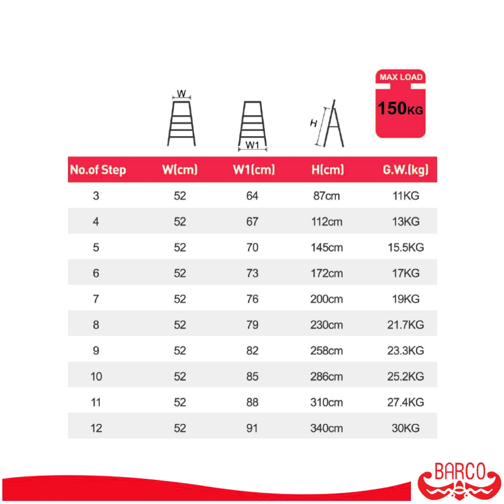 BARCO บันไดแพลตฟอร์มอลูมิเนียมติดล้อ 5 ขั้น 1.5 ม.