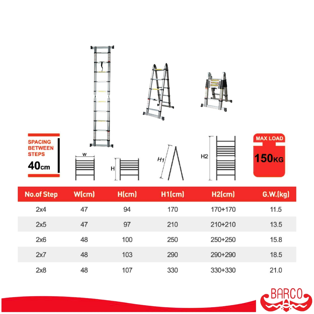 BARCO บันไดยืดหดอเนกประสงค์ รุ่น 2x6 2.50+2.50 เมตร