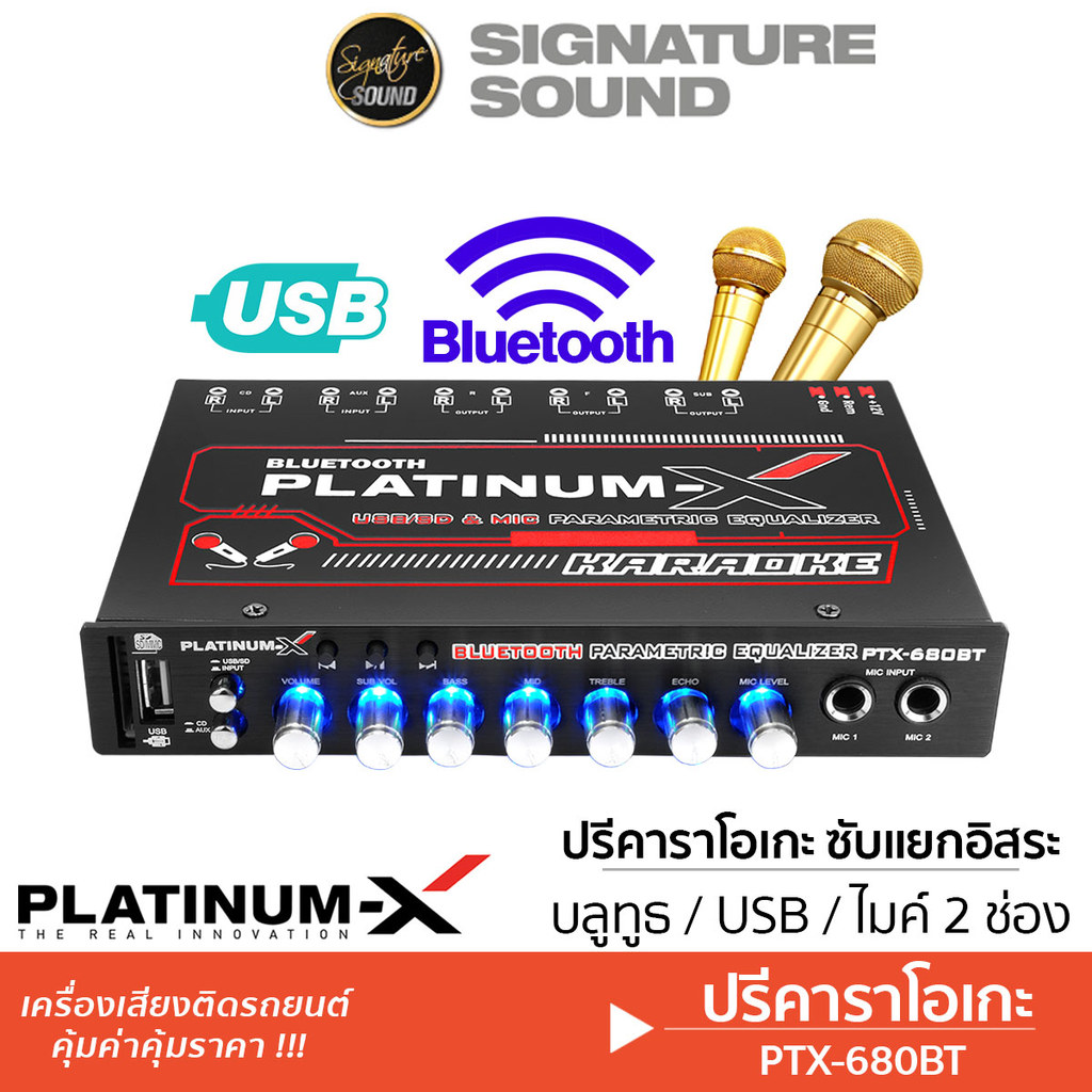 SignatureSound ปรีแอมป์ Platinum-x ปรีแอมป์รถยนต์ ปรีคาราโอเกะ มีลูทูธ เสียUSB SD CARDได้ เสียไมค์ได้2ช่อง ปรีไมค์คาราโ