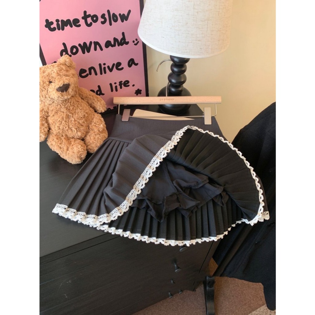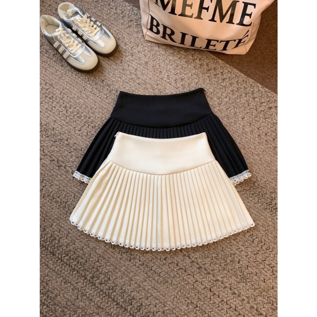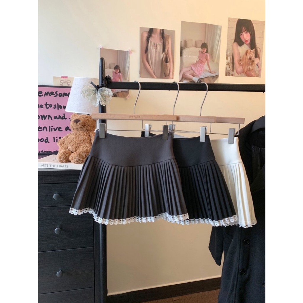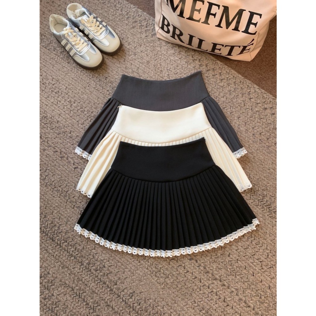 (D288) 🌸🌷 𝐄𝐦𝐦𝐚 𝐒𝐤𝐢𝐫𝐭 🍃🧸 กระโปรงสั้นจีบรอบ ชายแต่งลูกไม้หวานๆ มีซับใน พร้อมส่ง 3 สี 4 ไซส์