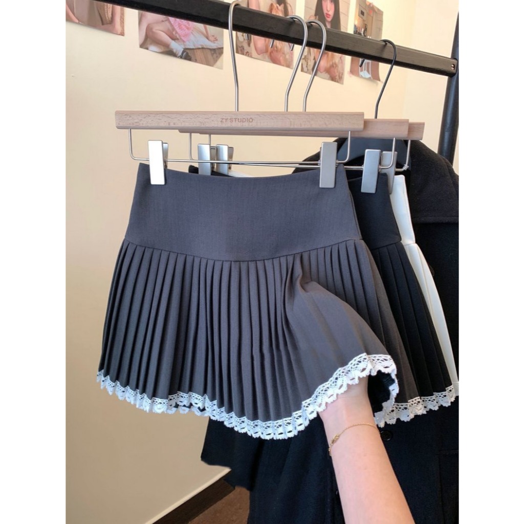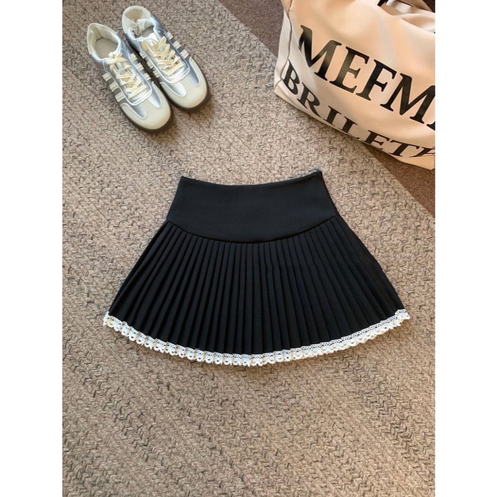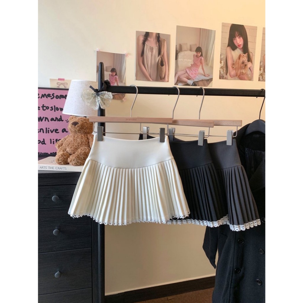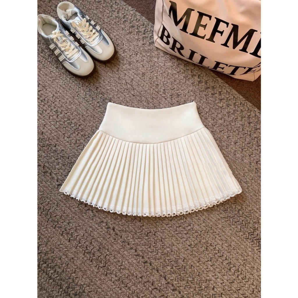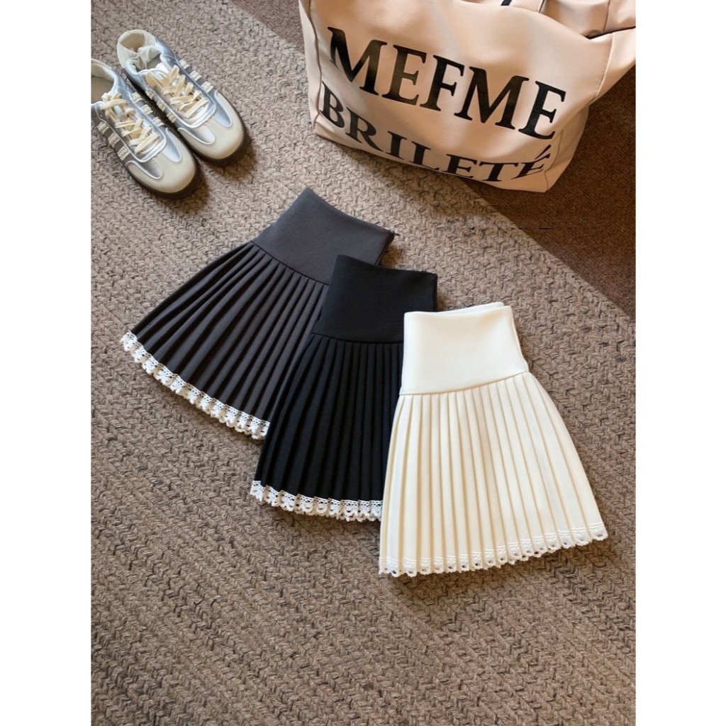 (D288) 🌸🌷 𝐄𝐦𝐦𝐚 𝐒𝐤𝐢𝐫𝐭 🍃🧸 กระโปรงสั้นจีบรอบ ชายแต่งลูกไม้หวานๆ มีซับใน พร้อมส่ง 3 สี 4 ไซส์